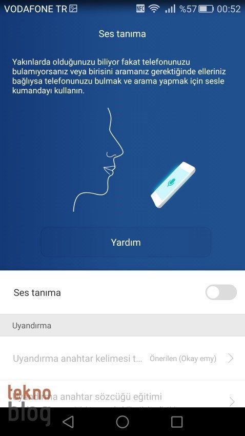 Huawei P8’e ses tanıma işlevi eklemiş, ancak bu işlev ne yazık ki Türkçe desteklemiyor. Yine de, ses tanımayı açabilir, art arda üç kez “Okay emy” diye seslenerek Huawei P8’e sesinizi tanıtabilir, bunun sonrasında uyandırma işlevi için sesinizi kullanabilir, “Okay emy” veya başka bir şekilde seslenerek Huawei P8’in nerede olduğunu bulabilir veya bir kişiye telefon etmesini sağlayabilirsiniz. Örneğin, Huawei P8’i bulmak için “Okay emy” diye söze başlayıp hemen arkasından “Where are you?” diye sorduğunuzda Huawei P8’in arkasındaki flaş ışığı yanıyor, zil sesi de çalmaya başlıyor. Ayrıca Huawei P8’den İngilizce dilinde “Buradayım” anlamında bir söz de duyuyorsunuz.