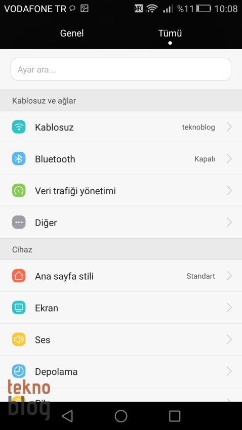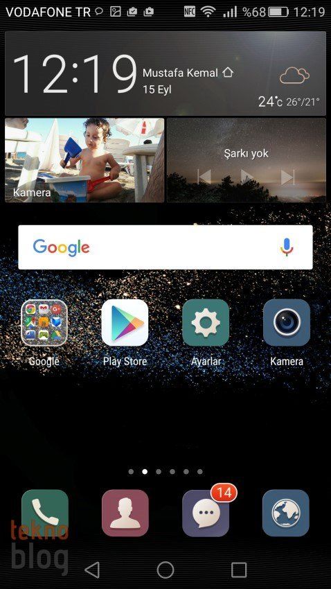 Emotion UI’da Apple’ın iPhone’larında bulunan Spotlight’a benzer bir arama motoru mevcut ve tıpkı iPhone’da olduğu gibi ana ekrandayken parmağınızı hızlıca aşağı sürüklediğinizde karşınıza arama motoru arayüzü çıkıyor. Buradan uygulama, kişi veya mesajlarda arama yapabilirsiniz.