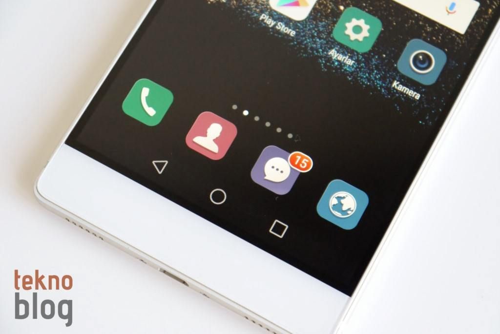 Huawei P8’in 5.2 inç ekanı 1080 x 1920 piksel Full HD çözünürlüğe sahip. Ekran Galaxy S6’dakiyle aynı büyüklüğe sahip, ancak Quad HD yerine Full HD’nin tercih edildiğini görüyoruz. Bu tercih çok da moral bozucu sayılmaz, çünkü 424 ppi piksel yoğunluğuyla bu ekran gayet keskin ve net yazılar ve grafikler sunmayı başarıyor. IPS LCD ekran Corning Gorilla Glass 3 ekran camıyla örtülmüş durumda. Yukarıda da belirttiğimiz gibi, Huawei P8’in ekranını saran ince çerçeve sayesinde bu telefonu kavramak ve kullanmak daha kolay oluyor. Ekran yeteri kadar büyük bir görüntüleme alanına sahip. Parlaklık da memnun edici seviyede ve gün ışığında bile Huawei P8’i rahat şekilde kullanmaya olanak sağlıyor.