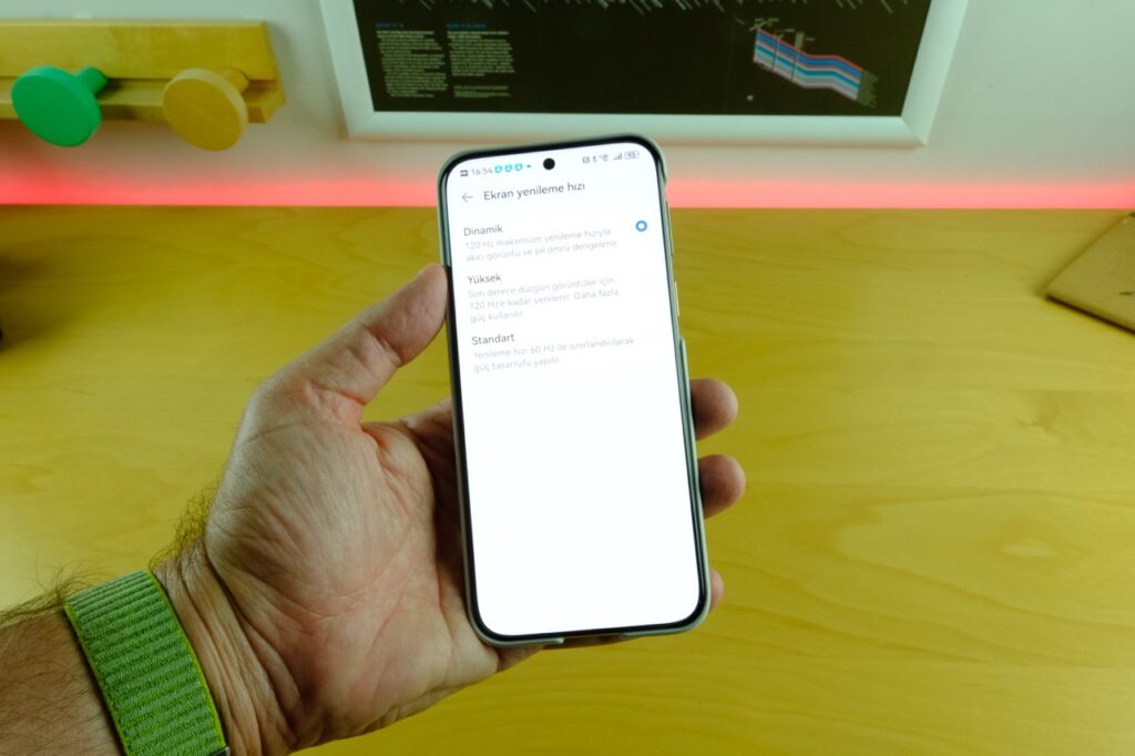 Huawei Pura 80 Ultra’nın ekranı, 6.8 inç boyutunda OLED teknolojisini kullanan büyük ve etkileyici bir panel. 1276 x 2848 piksel gibi alışılmışın dışında bir çözünürlüğe sahip bu ekran, yaklaşık 459 ppi değerinde keskinlik sunarak gözlere son derece net bir görüntü sağlıyor. Ekran renkleri canlı ve doygun, yüksek kontrast oranıyla siyahlar gerçek anlamda siyah görünüyor. Ayrıca bu panel LTPO özelliğine sahip, yani dinamik olarak yenileme hızı değiştirebiliyor ve en yüksek 120 Hz yenileme oranına çıkabiliyor. İsterseniz 120 Hz’te akıcı deneyimin tadını çıkarabilir, isterseniz pil tasarrufu için 60 Hz’e sabitleyebilirsiniz. Kavisli kenarlar sayesinde ekran kenarları kayboluyormuş gibi bir his yaratsa da kalın çerçeveler bu etkiyi biraz törpülüyor. Genel olarak Pura 80 Ultra’nın ekranı bir amiral gemisinden beklenen kaliteyi sunuyor.
