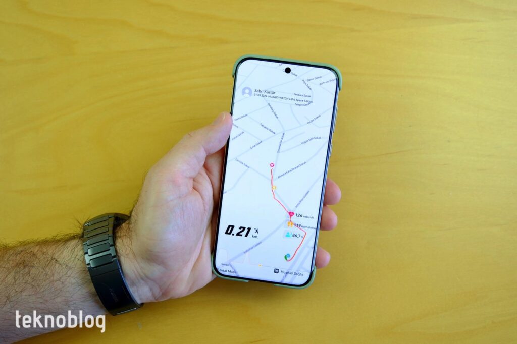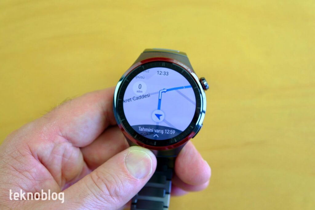 Bu akıllı saate de Huawei AppGallery üzerinden uygulama yükleyebilirsiniz. Bu sayede, iPhone ile bu saati eşleştirenler de çeşitli uygulamaları AppGallery’den yükleyerek üçüncü taraf uygulama desteğinden yararlanabiliyor. Bağımsız çalışan uygulamaların başında Petal Haritalar geliyor. Wi-Fi veya eSIM üzerinden ağa bağlıysanız, Petal Haritalar’da konumunuzu görebilir, etraftaki mekanları görüntüleyerek yol tarifini doğrudan saat üzerinden alabilirsiniz. Öte yandan doğrudan akıllı saat üzerinde, sanal klavyeyi kullanarak gideceğiniz yeri arayıp bulabilir ve daha sonra yol tarifine başlayabilirsiniz. Sesli uyarılar veya titreşimlerle uyarılıyorsunuz ve ekranda yol tarifi gayet hızlı ve doğru biçimde gösteriliyor. Yüksek binaların arasında bile GPS sinyal alışı iyi. Bu noktada dahili GPS alıcısı da işini iyi şekilde yapıyor.