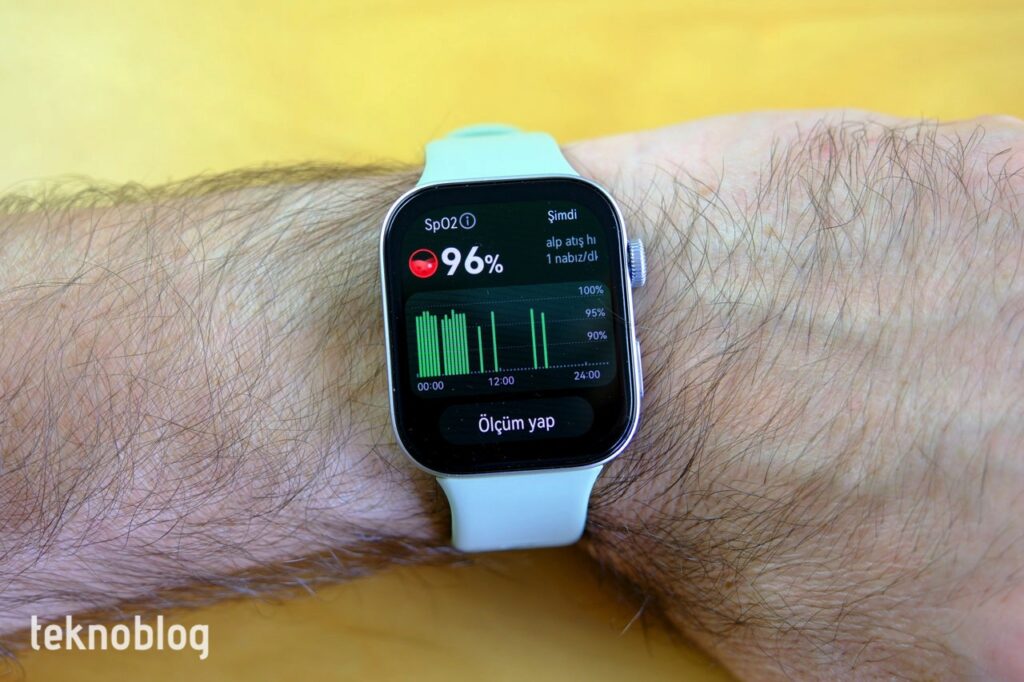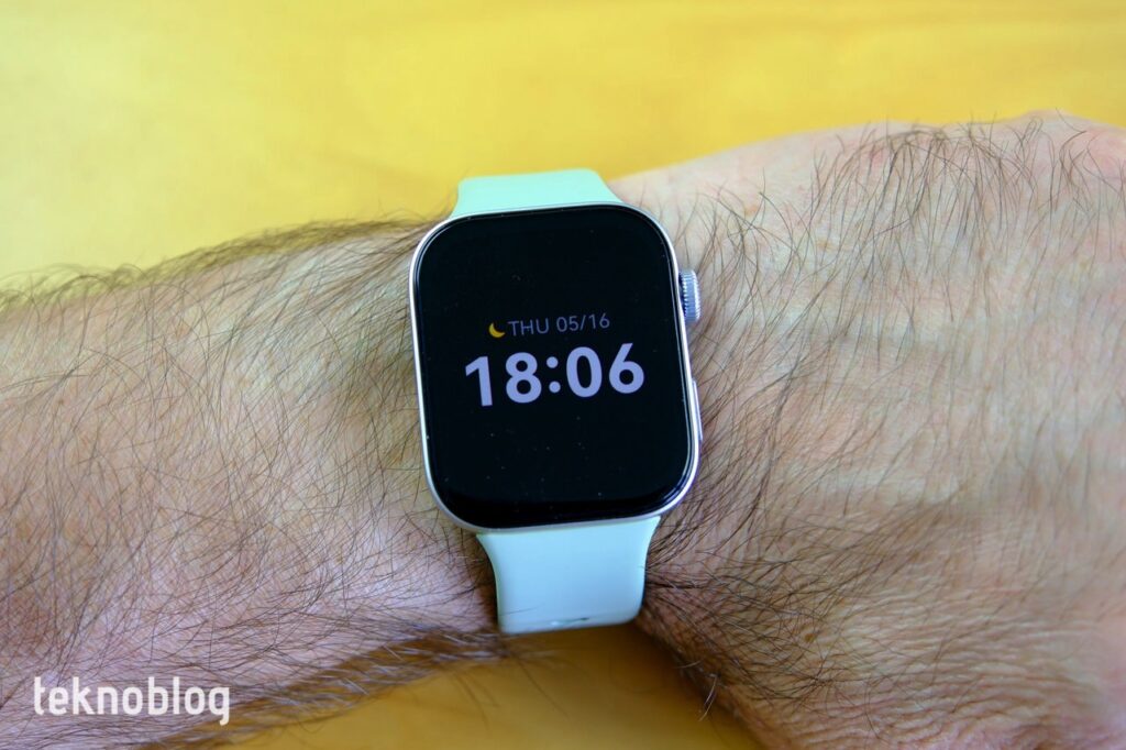 Kare ekranı, 1500 nit gibi yüksek bir parlaklık ve AMOLED ekran teknolojisiyle, özel saat kadranlarını klasik bir saat gerçekçiliğinde gösteriyor. Aynı zamanda parlak güneş ışığı altında gerçekletireceğiniz yüzme, koşu gibi egzersizler için de iyi bir görüş sağlayacaktır. Kalp hızı, kanda oksijen düzeyi, uyku gibi sağlık odaklı parametrelerin izlenmesi de yüksek doğrulukta yapılıyor.