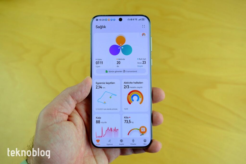 Huawei Watch Fit 3’ün sağlık ve egzersiz tarafında toplamış olduğu tüm verileri, bağlı telefondaki Huawei Sağlık uygulamasında görebilirsiniz. Egzersiz için zengin kayıtlar tutuluyor, rota bilgisini harita üzerinde, animasyon eşliğinde görüntülüyorsunuz. Kalp, Kanda Oksijen Düzeyi, Uyku gibi takip işlevleri için de detaylı grafikler, bilgilendirmeler ve analizler sunuluyor. Aynı durum diğer sağlık unsurları için de geçerli. Sağlıklı Yaşam Yoncası ise, çeşitli hedefler doğrultusunda, sağlığınıza ve hareketlerinize ne oranda dikkat ettiğinizi görmenize izin veriyor.