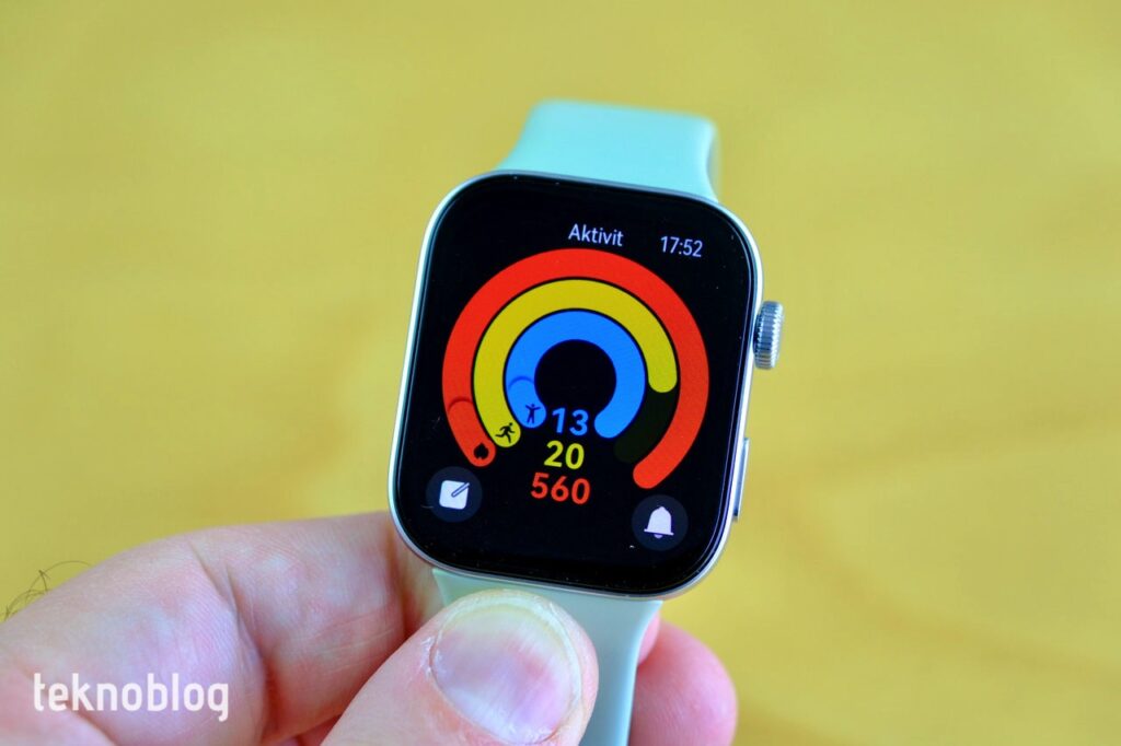 1.82 inçlik ekran, 347 ppi gibi yüksek ve retina seviyesinde bir piksel yoğunluğu sunuyor. Bu sayede yazılar çok okunaklı, saat kadranları ve diğer unsurlar da net biçimde gösteriliyor. Ekranın 1500 nitlik yüksek parlaklığı, sadece içeride değil, dışarıda da saati rahatlıkla görmeyi sağlıyor. Özellikle dışarıdaki egzersizlerde bu yüksek ekran parlaklığının avantajını görüyorsunuz. 60 Hz yenileme hızlı ekran bu sayede kaydırmalarda veya diğer arayüz noktalarında yeterli bir akıcılığı sunuyor.