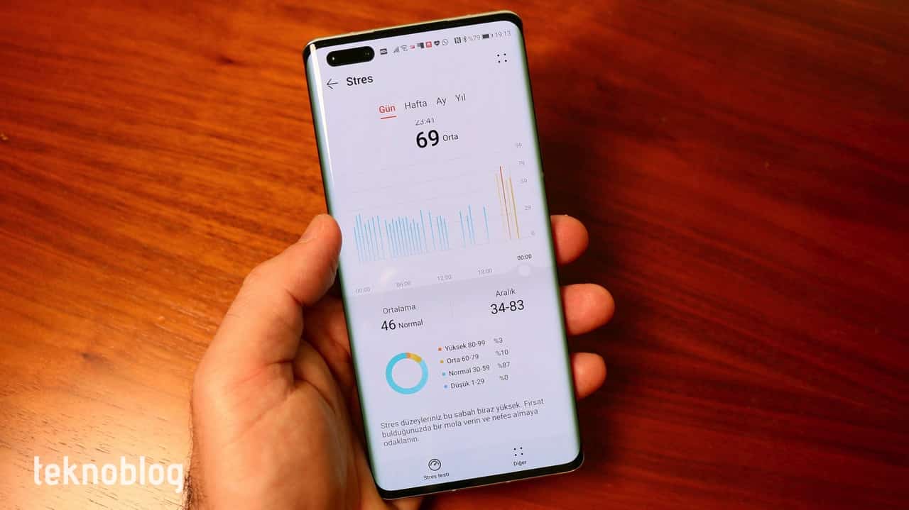 Stres İzleme gayet düzgün biçimde çalışıyor. Günlük grafiğe baktığımda ve stres değişimlerine karşılık gelen zamanları değerlendirdiğimde, gerçekten de o anlarda stresli veya sakin olduğumu hatırlıyorum. Örneğin Beşiktaş’ın maçı sırasında epey heyecanlı ve gergindim. 83 stres puanı da bu durumumu nicel olarak doğruluyor. Bu arada Huawei, Stres İzleme için bir kalibrasyon testi de sunuyor. Sağlık uygulaması üzerinden sunulan bu testi cevaplayarak Stres İzleme’nin daha doğru sonuçlar vermesini sağlayabilirsiniz. Zaten bu özelliği ilk kez kullanmaya başlarken, söz konusu testi gerçekleştirmeniz gerekiyor.