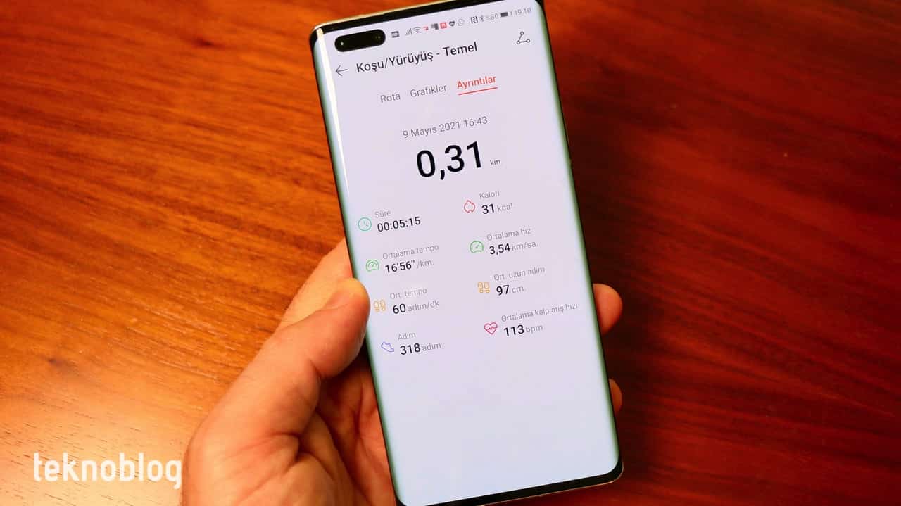 Her bir egzersiz içinde gidilen mesafe, egzersiz süresi, yakılan kalori miktarı gibi bilgiler gösteriliyor. Bunun dışında hız, adımlar, kalp atış hızı, eitim etkisi, VO2Max düzeyi ve iyileşme süresi gibi bilgiler de Egzersiz Kayıtları uygulaması içinde, her bir egzersiz seansı için erişilebilir durumda bulunuyor. Huawei Watch Fit Elegant’ın sahip olduğu sensörler ve donanım bileşenleri, bu sonuçların yüksek doğrulukta olmasını sağlıyor.