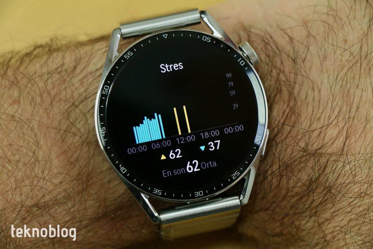 Daha önceki Huawei akıllı saatleri, vücut parametrelerinin veya aktivitelerin takip edilmesi ve kayıt altına alınması konusunda yüksek doğruluk sergiliyordu. Aynı çizginin Watch GT 3’te de devam ettiğini görüyoruz. Bu akıllı saat de 7 gün 24 saat sürekli çalışan bir sağlık asistanı gibi davranıyor. Nabız takibi, uyku izleme, kandaki oksijen düzeyi ölçümü ve stres seviyesi ölçme gibi işlevleri sunuyor. Bunları saat kadranının yanlarına yerleştirilmiş kartlar sayesinde hızlı biçimde görmek mümkün. Grafikli gösterim gün içindeki değişimleri iyi şekilde görmeyi sağlıyor ve geride kalan birkaç saate baktığımda, ortaya çıkan tabloyla paralel biçimde aktivitelerin gerçekleştirildiği veya çeşitli duyduların yaşandığını görüyorum.