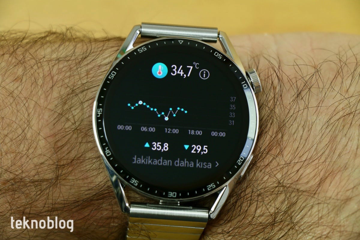 Bu arada daha önce Huawei Watch 3 serisinde gördüğümüz cilt sıcaklığı ölçme özelliğinin Watch 3 GT’de de bulunduğunu görüyoruz. Bu özellik, gerçek anlamda vücut sıcaklığını ölçme konusunda yol gösterici olmasa da, bir fikir vermesi açısından yararlı olabilir. Normal vücut sıcaklığı 36-37 santigrat derece arasıdır. Watch 3 GT ise 34-35 santigrat derece arasında normal ölçümler gerçekleştiriyor. Bu aralığın üzerine çıkılması durumunda daha kapsamlı bir termometreyle ölçüm yapma fikrini değerlendirebilirsiniz.