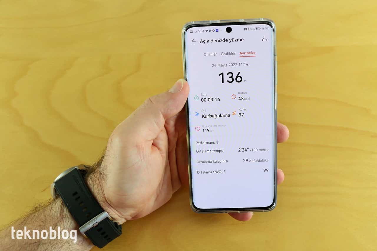 Bu arada otomatik hareket algılama ile çeşitli aktiviteleri otomatik olarak izlemeye başlama imkanı da Watch GT 3 Pro’da mevcut. Egzersiz sırasında İngilizce olarak geçilen çeşitli bilgi mesajlarıyla ne durumda olduğunuza dair küçük ancak yararlı geri bildirimler alıyorsunuz. Aktivite kayıtları ise gerçekleştirdiğiniz tüm egzersiz ve hareket kayıtlarını takip etmenize izin veriyor.