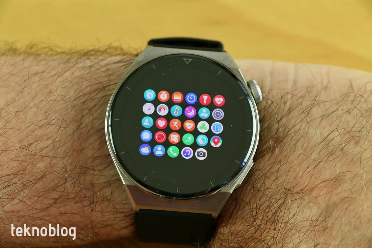 Öncelikle Watch GT 3 Pro’da gezinti işleminin pürüzsüz biçimde gerçekleştiğini belirtelim. Geçişler, kaydırma ve bunun gibi hareketleri dilerseniz dokunmatik ekran üzerinde parmağınızı hareket ettirerek, dilerseniz saatin ekranının kenarlarında parmağınızı kaydırarak gerçekleştirebilirsiniz. Üstelik ikinci hareketle harita, fotoğraf ve benzeri içerik ve uygulamalarda yakınlaştırma ve uzaklaştırma da yapabilirsiniz. Bu hareketleri ıslak ellerle gerçekleştirebilirsiniz. Bu sayede suda gerçekleştirdiğiniz antrenmanlarda saati daha rahat biçimde kontrol edebilirsiniz. Dokunmatik ekrandan daha rahat ve kullanışlı bir gezinti aracı ise sağ kenardaki halka oluyor. Bunu döndürerek kaydırma, yakınlaştırma ve benzeri işlevleri gerçekleştirebilirsiniz. Bastığınızda ise uygulama menüsüne, diğer bir deyişle Grid Launcher adlı kullanıcı arayüzüne erişebilirsiniz.