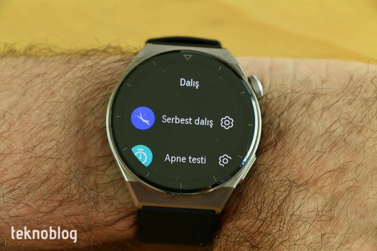 Bu arada havuz veya deniz demişken Watch GT 3 Pro, Huawei’nin belirttiğine göre suya en dayanıklı akıllı saat. 5 atmosfer basınca ve 50 metre derinliğe kadar suya dirence sahip. Bu da Huawei’nin şık görünümlü akıllı saatini her türlü aktivite için elverişli hâle getiriyor. Ayrıca tuzlu suya da dayanıklı olan akıllı saat, daha önce bir akıllı saatte görmediğimiz görülmemiş serbest dalış modu verimli şekilde kullanmamızı sağlıyor. Huawei’nin sayesinde Bodrum’da, ilk kez bir dalış deneyimi yaşadık. Yaklaşık 4-5 metre derinliğe kadar, bilekte Watch GT 3 Pro bulunduğu hâlde tüple dalarak yaşadığımız su altı deneyiminde, saatin yüksek basınca, hem de tuzlu su içinde dayandığını ve tüm işlevlerinin çalıştığınız gözlemledik.