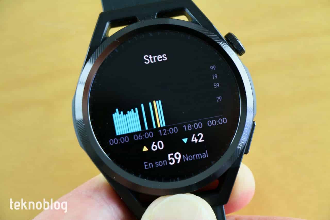 Uyku takibi de saatin özelliklerinden biri. Watch GT Runner’ın deriye nefes aldıran tasarımı ve kayışı, aynı zamanda hafif gövdesi, bu akıllı saatin geceleri bilekte rahatlıkla taşınmasına olanak sağlıyor. Böylelikle etkili uyku takibi yapılıyor. Uyandıktan sonra uyku aralıklarını saatin ekranında görebilirsiniz. Bağlı telefondaki Huawei Sağlık uygulamasında ise daha anlamlı ve detaylı bilgiler, grafikler mevcut. Stres İzleme de daha önceki Huawei telefonlarından sevdiğimiz, güvendiğimiz uygulamalardan biri. O da Watch GT Runner’da mevcut. Nefes egzersizleri de, rahatlamaya yardımcı olacak bir araç olarak bu saatte mevcut.