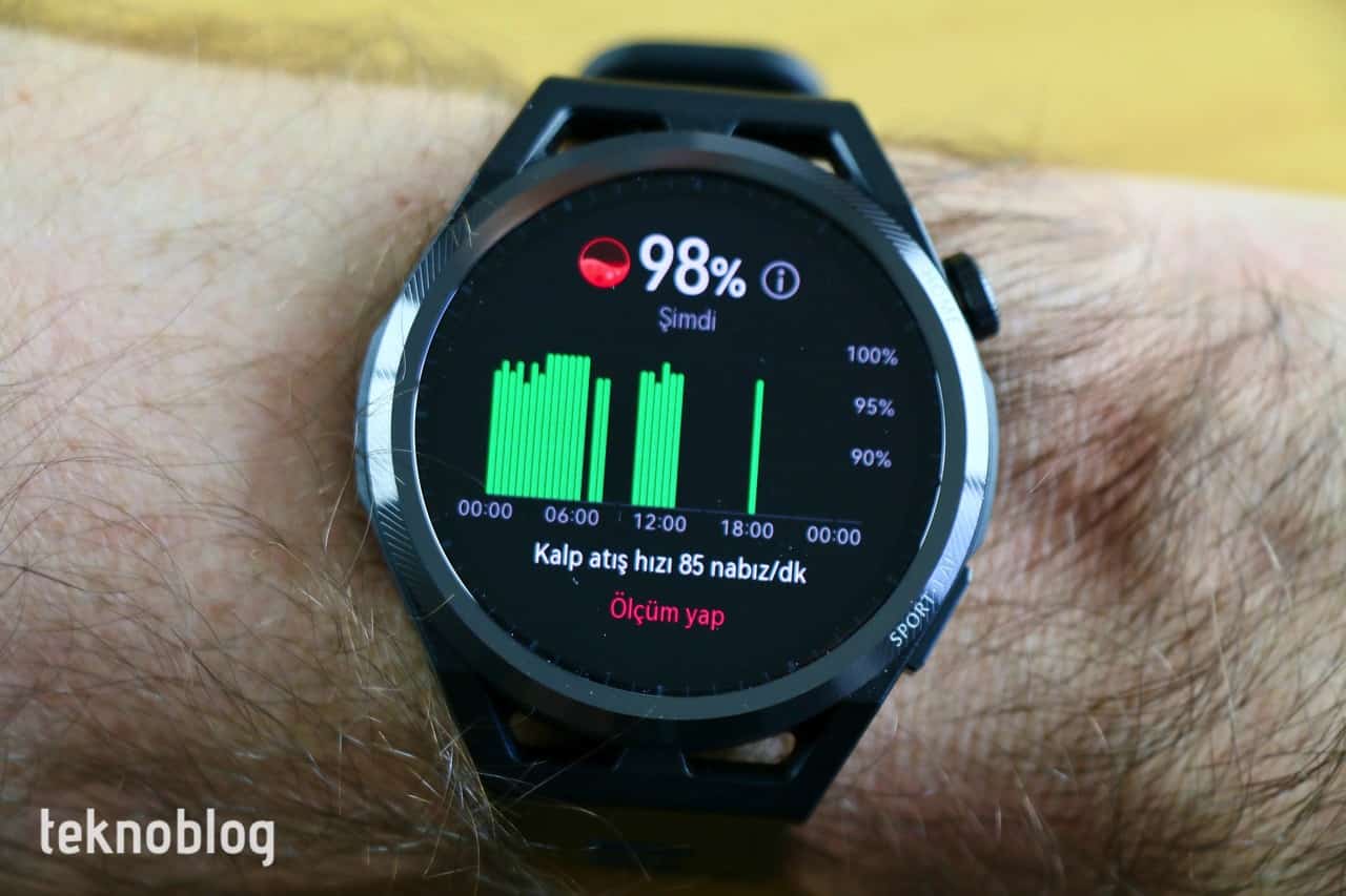 Pil tarafına geldiğimizde, Huawei Watch GT Runner diğer Huawei akıllı saatlerinin çizgisini takip ediyor. Saatte 451 mAh kapasiteli lityum iyon polimer pil bulunuyor. Huawei, tipik kullanımda 14 güne varan pil ömrüne ulaşılabileceğini belirtiyor. Tabii ki, yoğun egzersizlerde, dışarıda sıklıkla GPS’e bağlı egzersiz takiplerinde bu süre daha aşağı inecektir. Biz, saatin ekranını bilek hareketiyle uyandırma, birkaç egzersiz takibi, birkaç sabah alarm kurma, bağlı telefondaki bildirimleri saatin ekranından kontrol etme gibi bir senaryoda, yaklaşık 10-11 gün gibi bir kullanıma erişebileceğimizi gördük. Saatin pili her gün yaklaşık yüzde 10 oranında azalıyordu. Bir akıllı saat için bu değerlerin fazlasıyla parlak olduğunu söyleyebiliriz.