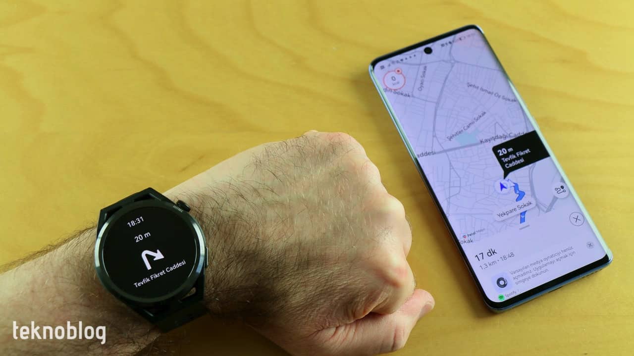 Petal Haritalar uygulamasını da uygulama menüsü içinde görüyoruz. Bu uygulamayı kullanmak için bağlı telefonda Petal Haritalar yüklü olmalı. Akıllı telefonunuzda bir yol tarifi başlattığınızda, tarifin adımları saat ekranında gösteriliyor. Özellikle yürürken yol tariflerine ihtiyaç duyduğunuzda, bileğinize gelen direktifler bir hayli kullanışlı olacaktır.