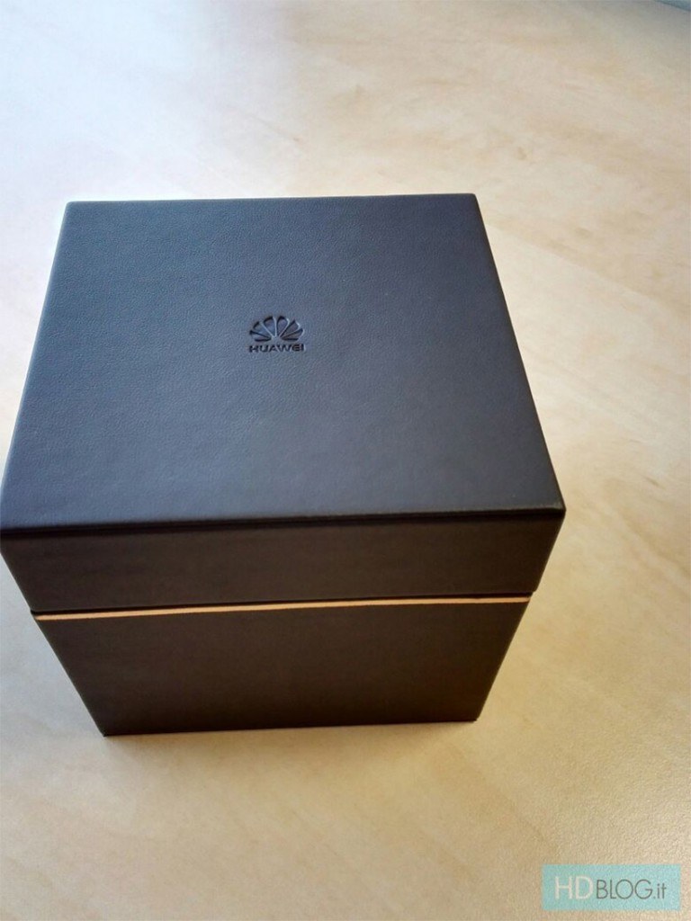 Üst sınıf tarz ve tasarıma sahip olan Huawei Watch’un kutusu da bu özellikleri taşıyor. Menteşeli kutu açıldığında Huawei Watch’un bir minderin üstüne yerleştirildiği görülüyor. Böylelikle Huawei Watch’un kuyumcudan alınmış bir ürün görüntüsüne kavuşması sağlanıyor.