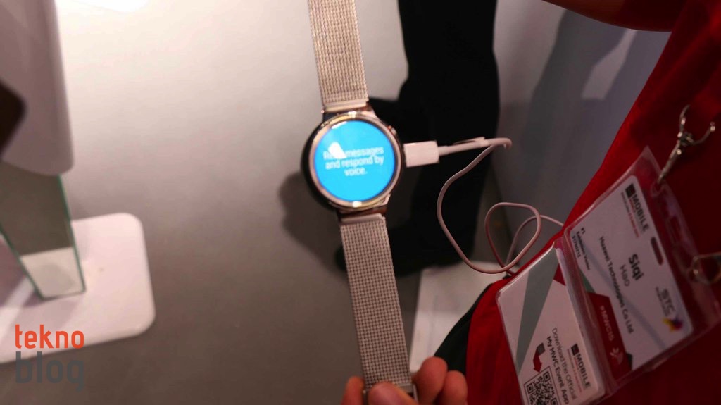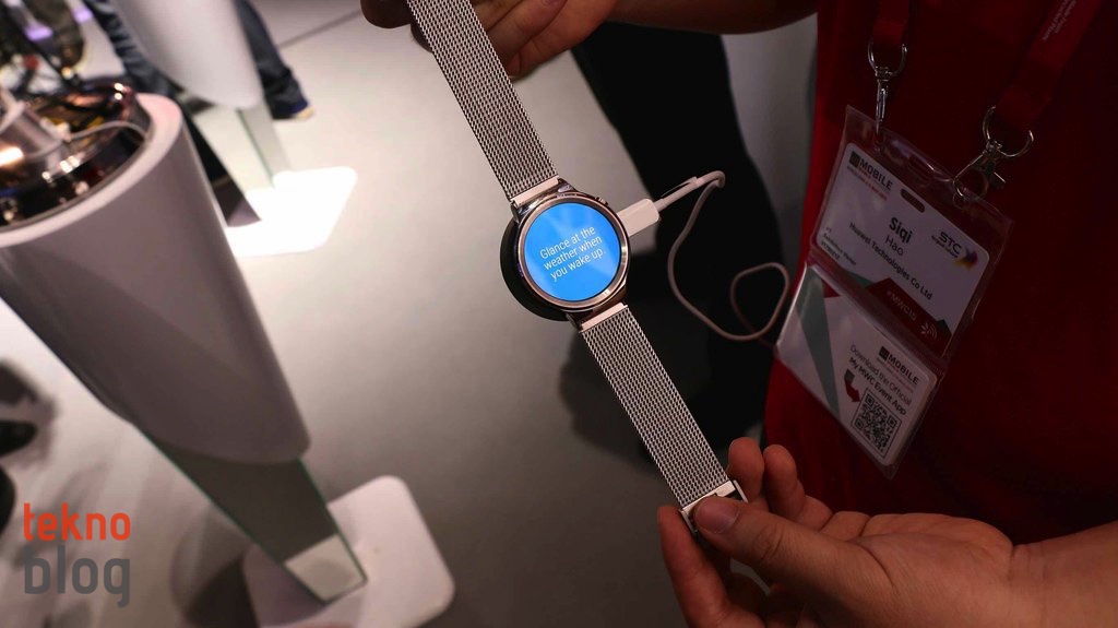 Huawei de üst sınıf akıllı saat kervanına yeni bir ürünle katıldı. Şirketin Mobil Dünya Kongresi’ndeki gözde ürünü olarak nitelendirebileceğimiz Huawei Watch, stand içinde özel bir bölümde, başında güvenlik görevlisi ve güvenlik şeridi durur hâlde gösteriliyor.