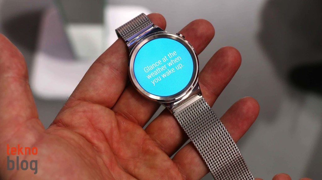 Huawei henüz bu saate yakından bakıp deneyimlememize izin vermiyor, saatin standda sergilenen örneklerinde de Android Wear’ın sunum animasyonu oynatılıyor. Yine de bu durum saatin ihtişamını görmemize engel değil.