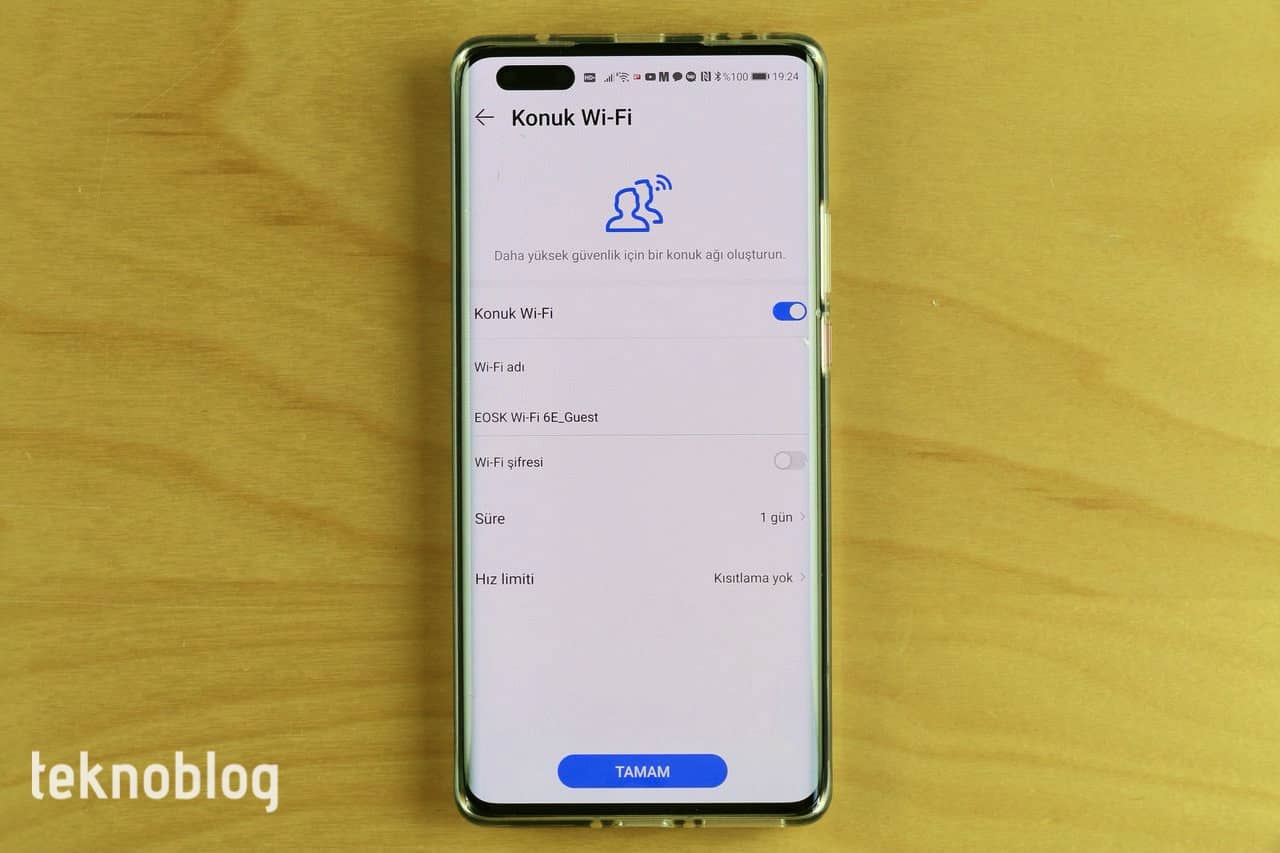Ofiste 100 Mbps maksimum indirme ve 10 Mbps maksimum yükleme hızlı fiber internet kullanıyoruz. Huawei Mate 40 Pro ile Wi-Fi 6 bağlantısı aktif durumdayken yaptığımız Speedtest hız testinde yaklaşık 92 Mbps indirme ve 9.6 Mbps yükleme hızlarını gördük. Benzer bir sonucu yine Wi-Fi 6 desteğine sahip olan 2021 model Huawei MateBook 14 ile gördük. Wi-Fi 6 destekli iPad Air da Speedtest’te benzer sonuçlar verdi. Kısacası Wi-Fi 6 bağlantısında ağ bağlantısından maksimum performansta, kabloyla bağlantıya yakın seviyede bir verim elde etmeyi sağlıyor. Bu testlerde Wi-Fi AX3 ile arada yaklaşık 1-1,5 metrelik mesafenin bulunduğunu belirtelim.