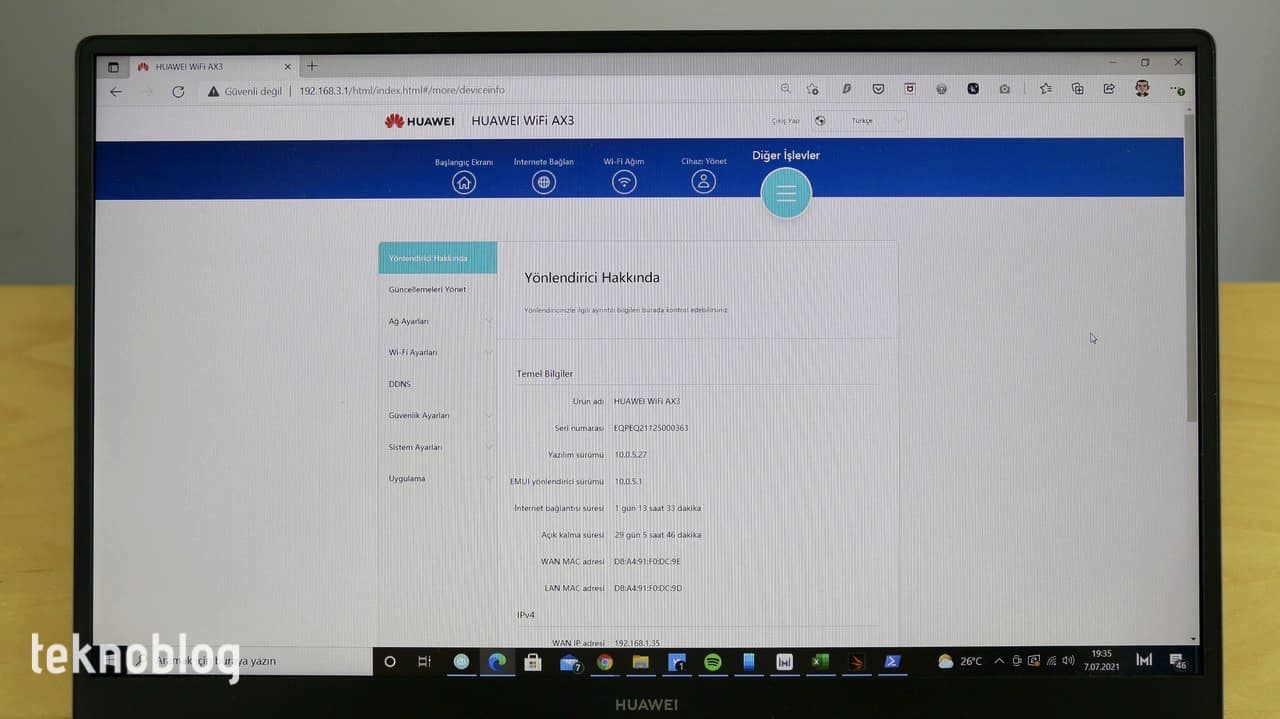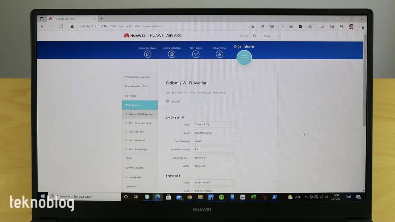 Diğer İşlevler bölümü altında ise yönlendirici hakkında bilgiler ve güncellemelerin yönetimi mevcut. Ağ, Wi-Fi, DDNS, güvenlik ve sistemle ilgili daha gelişmiş düzeydeki ayarları da burada görebilirsiniz. Görüldüğü üzere Huawei, Wi-Fi AX3’ün en çok ihtiyaç duyulacak, genel kullanıcı kitlesini ilgilendiren basit ayarlarını ana menüler altında toplarken, daha profesyonel düzeyde bilgi ve deneyim gerektiren tüm kontrolleri Diğer İşlevler bölümüne toplamış.