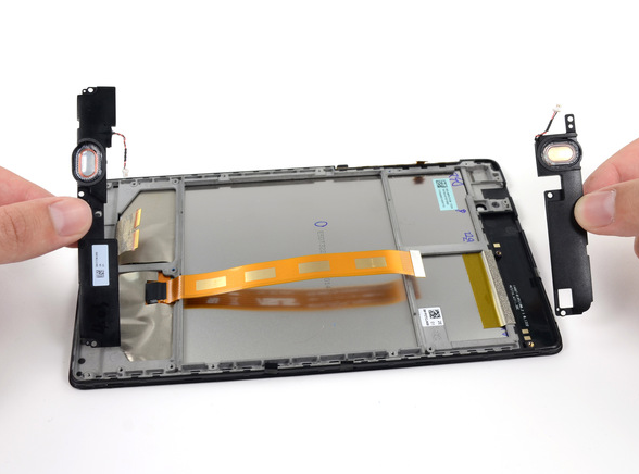 Devre kartları çıkınca geriye, kolaylıkla erişilebilen hoparlörler ve Wi-Fi anteni kalıyor. Sonuç olarak iFixit’in söylediğine göre ikinci nesil Nexus 7 kolaylıkla sökülüyor ve yeniden birleştiriliyor.