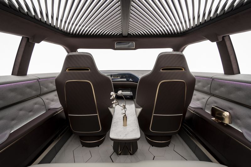 QX Inspiration, hem eski hem de yeniye ait tasarım unsurlarını bünyesinde barındırıyor. Kabinin ön tarafında modern ve teknolojik görünümlü tasarım göze çarparken, arka tarafta daha klasik dokunuşlar yapıldığı görülüyor. Infiniti tarafından paylaşılan görsellerde iç tasarımda ahşap ve mermer gibi malzemelerin kullanılması da dikkat çeken bir diğer unsur oluyor.