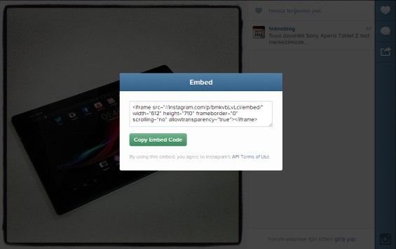 Kendilerine veya başkalarına ait olan bir profil üzerinden paylaşılmış içeriği web sayfasına eklemek isteyen kullanıcılar, içeriğe özel sayfada, yorum alanının hemen yanında yer alan paylaş butonuna tıklayarak sayfaya yerleştirme kodunu hızlı şekilde alabilecek. Kodu kopyaladıktan sonra HTML destekli bloglara, web sitelerine veya yazılara bu içeriği eklemek mümkün olacak.