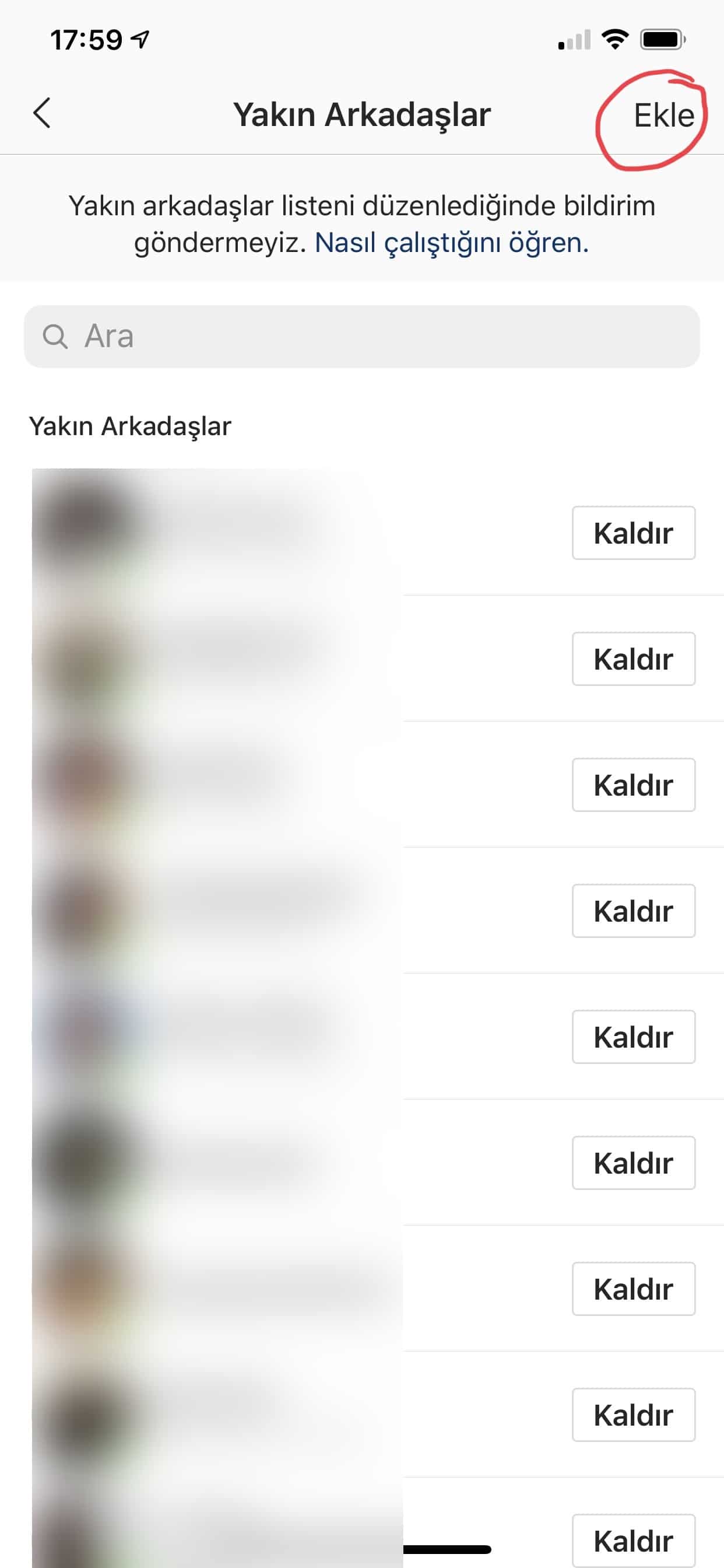 - Artık “Yakın Arkadaşlar” seçeneğini tercih ettiğinizde, mevcut yakın arkadaşlar listenizi göreceksiniz. Sağ üst köşede yer alan Ekle bağlantısına tıklatın. Eklemek istediğiniz arkadaşı arayarak bulundu. Daha sonra da karşısına denk gelen Ekle düğmesine tıklatarak listeye ekleyin.