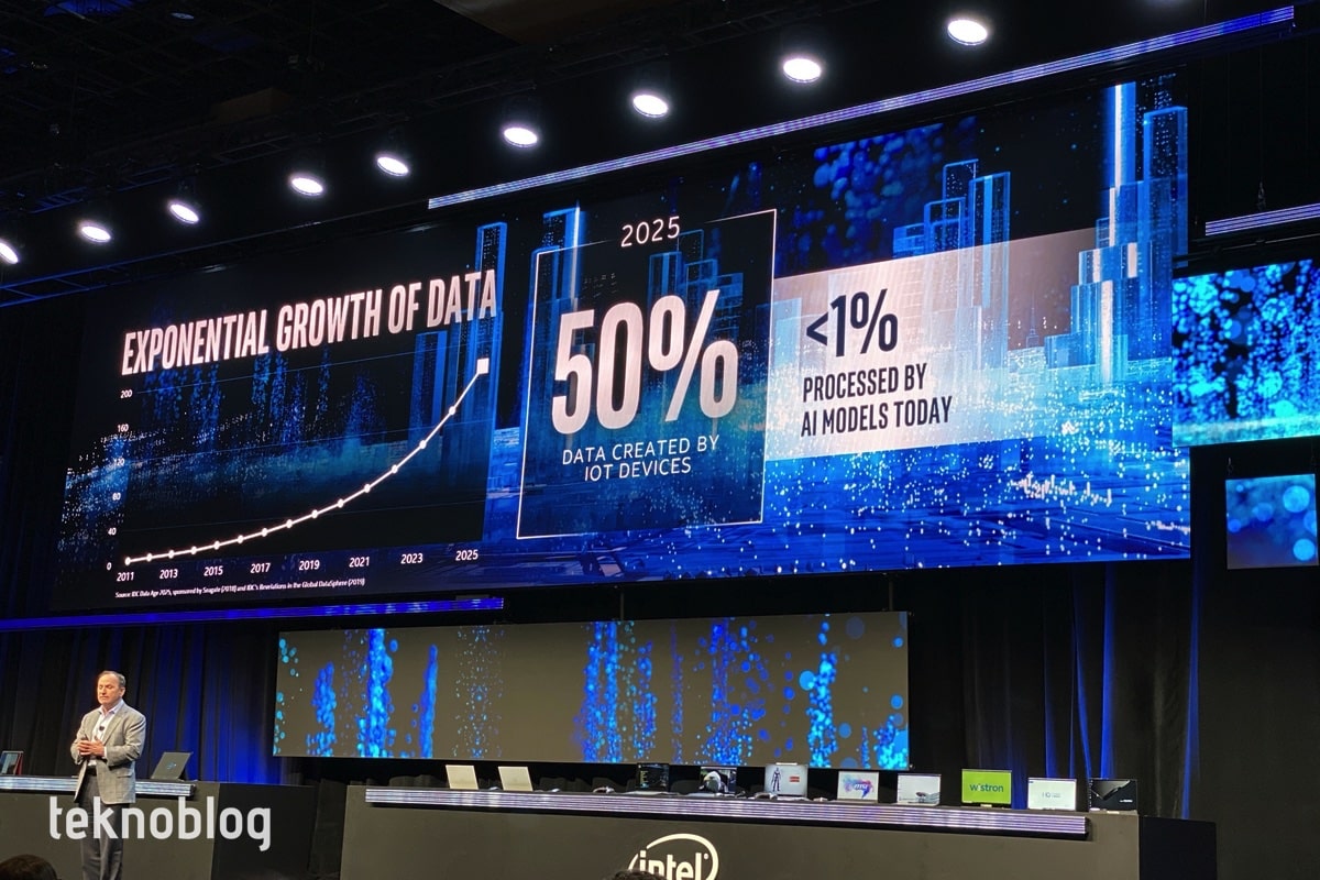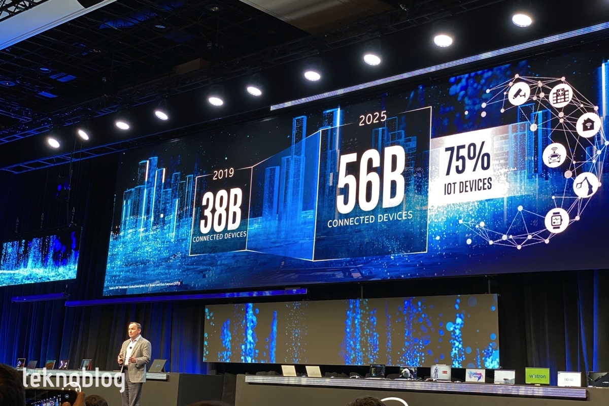 Intel CEO’su Bob Swan’ın açılışını yaptığı basın toplantısında, 2019’da internete bağlı cihaz sayısının 38 milyar olduğu, bunun 2025’te 56 milyara çıkacağı kaydedildi. 2025’te üretilecek veri miktarının 175 zetabayt seviyesine ulaşacağını söyleyen Swan, bunun yarısını da Nesnelerin İnterneti cihazlarının üreteceğini belirtti. Intel, kendisini bu geleceğe hazırlıyor.