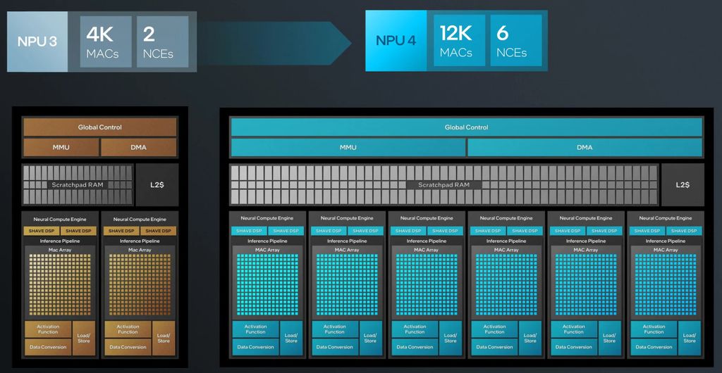 Meteor Lake, yapay zeka PC jenerasyonunu başlatmakta beklenen başarıyı yakalayamamıştı. Ancak Lunar Lake, NPU donanımını üç katına çıkararak, bellek bant genişliğini iki katına çıkarıyor ve saat hızını 1.4GHz’den 1.95GHz’ye yükseltiyor. Bu, 48 TOPS’a kadar performans sağlıyor ve genel performansta 2x ila 4x artış sunuyor.
