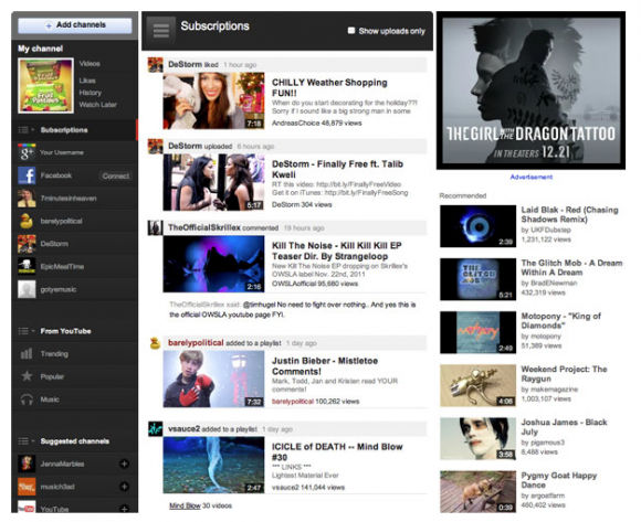 YouTube birkaç aydır test ettiği yeni tasarımını faaliyete geçirdi. Yeni tasarım Google’ın sosyal ağ girişimi Google+’ı hayata geçirmesiyle birlikte başlayan tasarım değişikliklerinin izlerini yansıtıyor. YouTube yeni dönemde Google+ ile daha fazla entegre hâle getirildi. Kanal abonelikleri daha da kolaylaştırıldı ve kullanıcılara YouTube’u bir TV kanalı izliyormuş gibi takip etme fırsatı sunuldu.