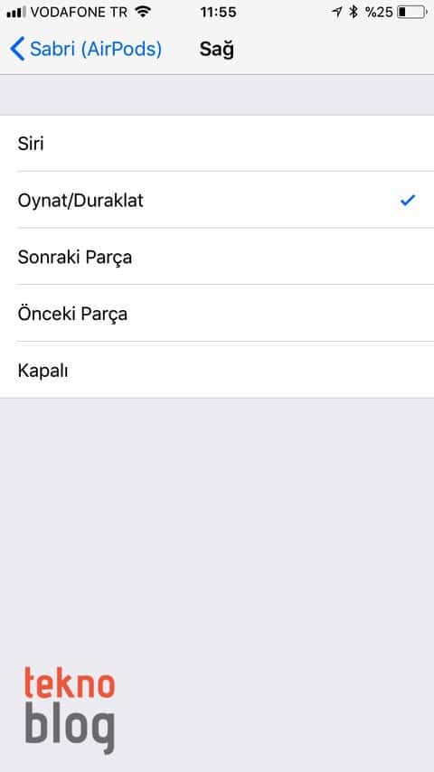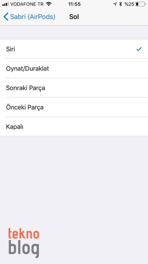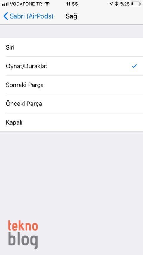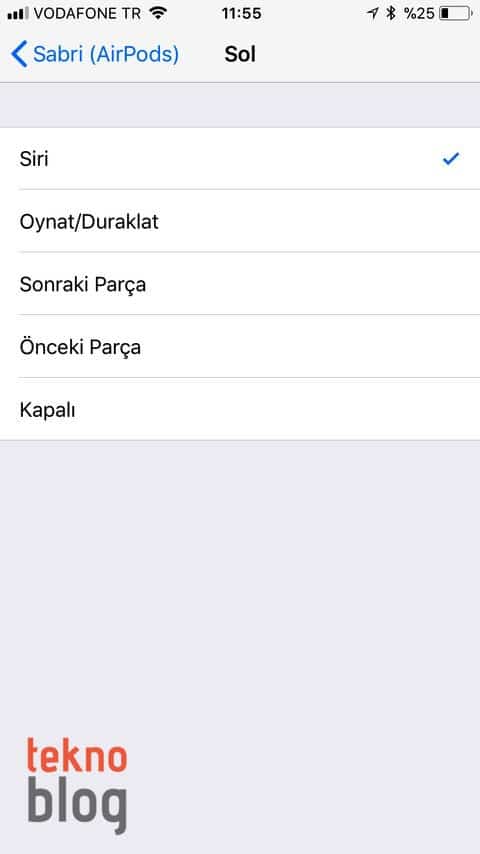 Ancak iOS 11 ile birlikte kullanıcılar sağ ve sol AirPod topuzlarına bağımsız kontroller atayabiliyor. Örneğin herhangi bir topuza tıklatarak Siri’yi açma, çalma veya duraklatma, sonraki şarkıya atlama ya da önceki şarkıya geri dönme gibi işlevleri yerine getirmek mümkün oluyor.