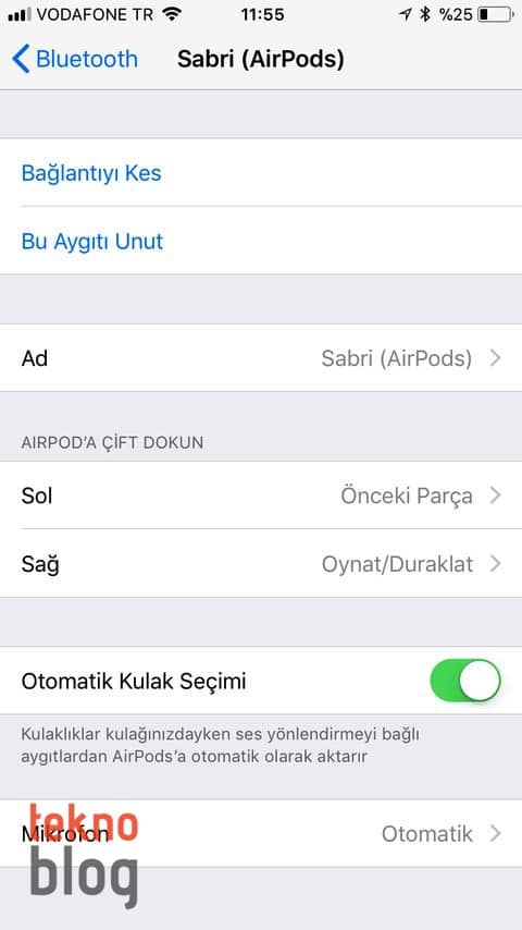Daha önce olduğu gibi yine Otomatik Kulak Seçimi veya Mikrofon gibi AirPods ayarları bulunmaya devam ediyor.