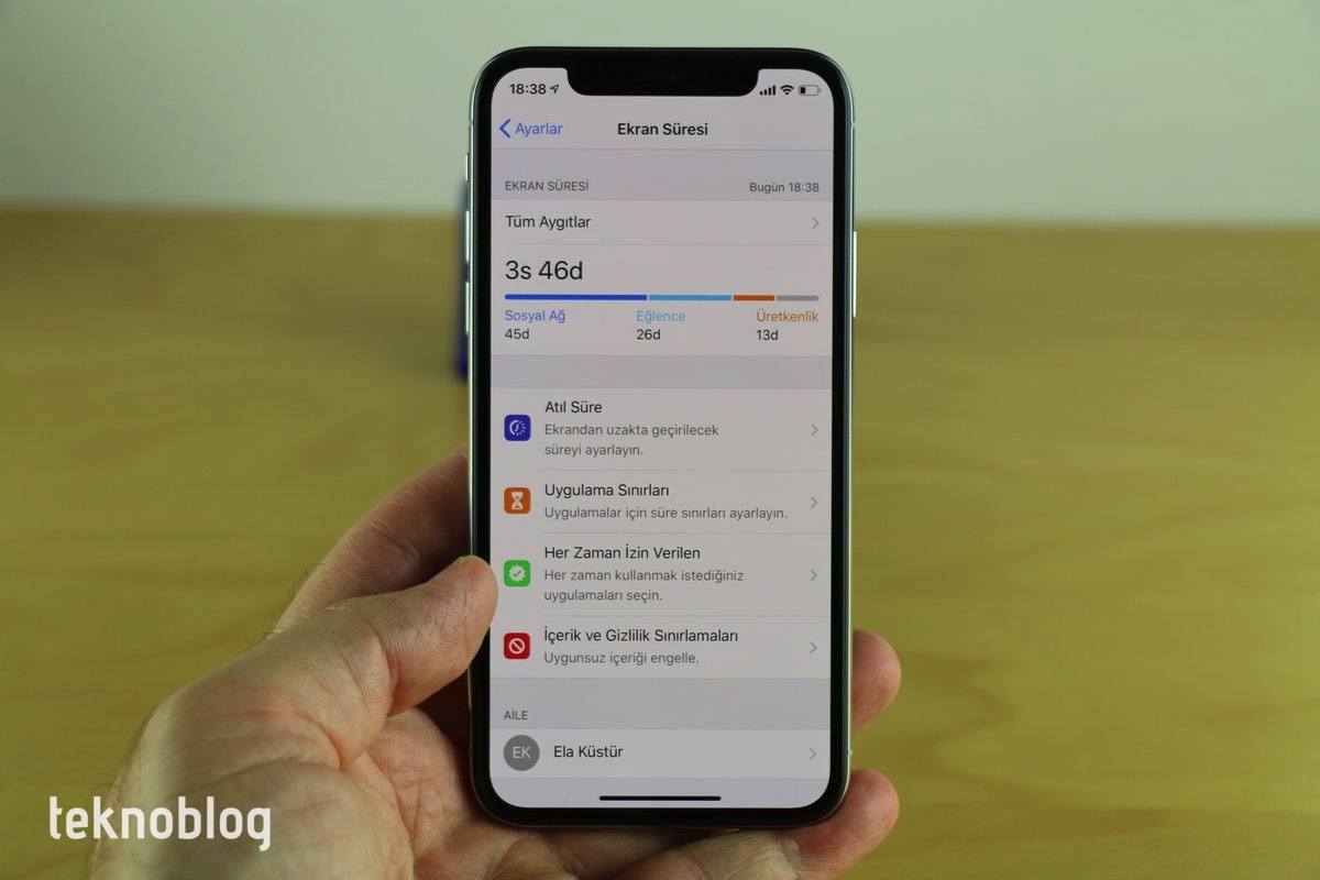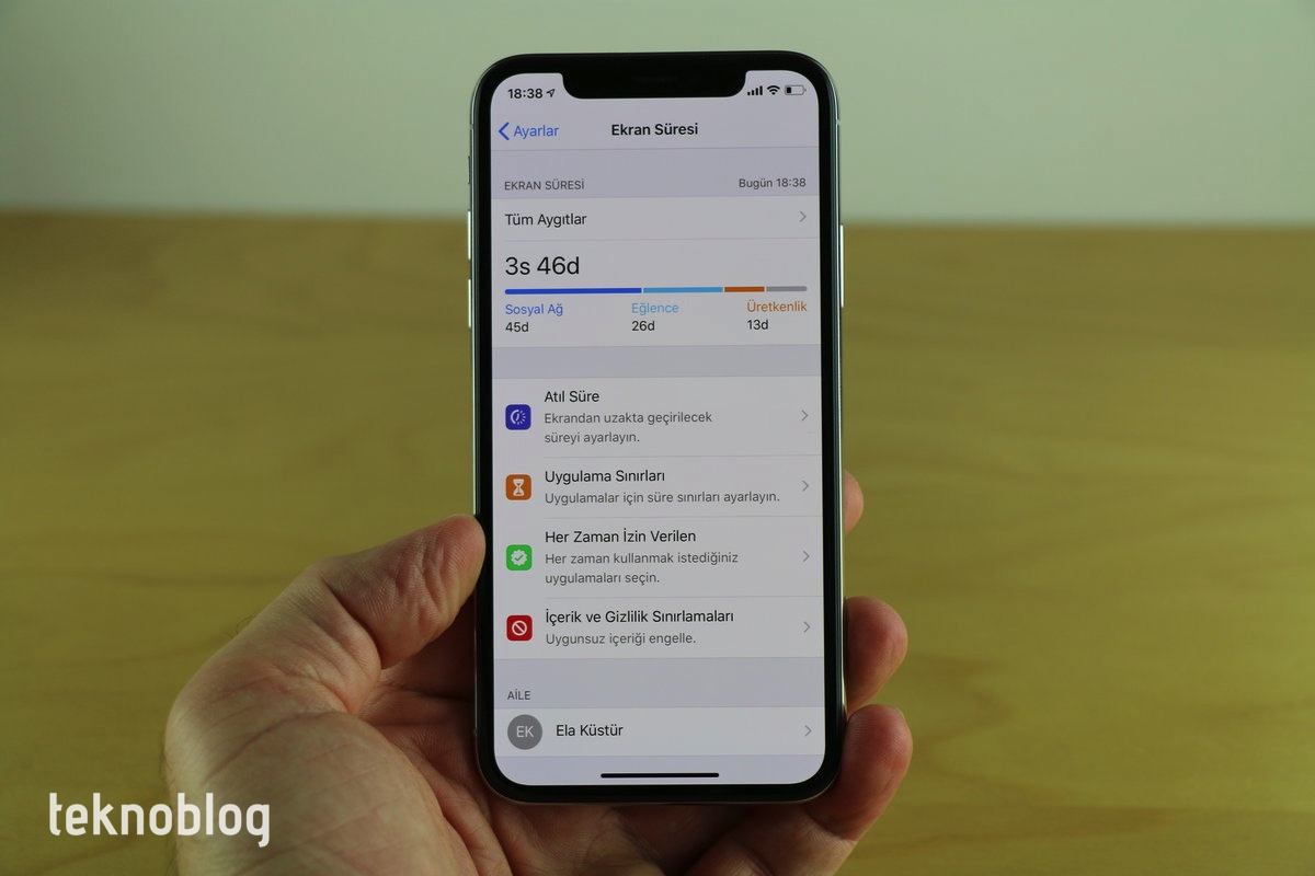Ekran Süresi içinde ebeveynleri ve çocukları ilgilendiren özellikler de var. Anne ve babalar, Ekran Süresi ayarları içinden çocuklarının iPhone ve iPad’lerinin günlük ve haftalık kullanımlarını görüyor, cihaza ve uygulamalara sınırlar ekleyebiliyor. Eğer çocuklar daha fazla kullanmak için izin isterlerse, bunun için size başvurmaları gerekiyor. Ekran Süresi özellikle ebeveynlerin çok hoşuna gidecektir.