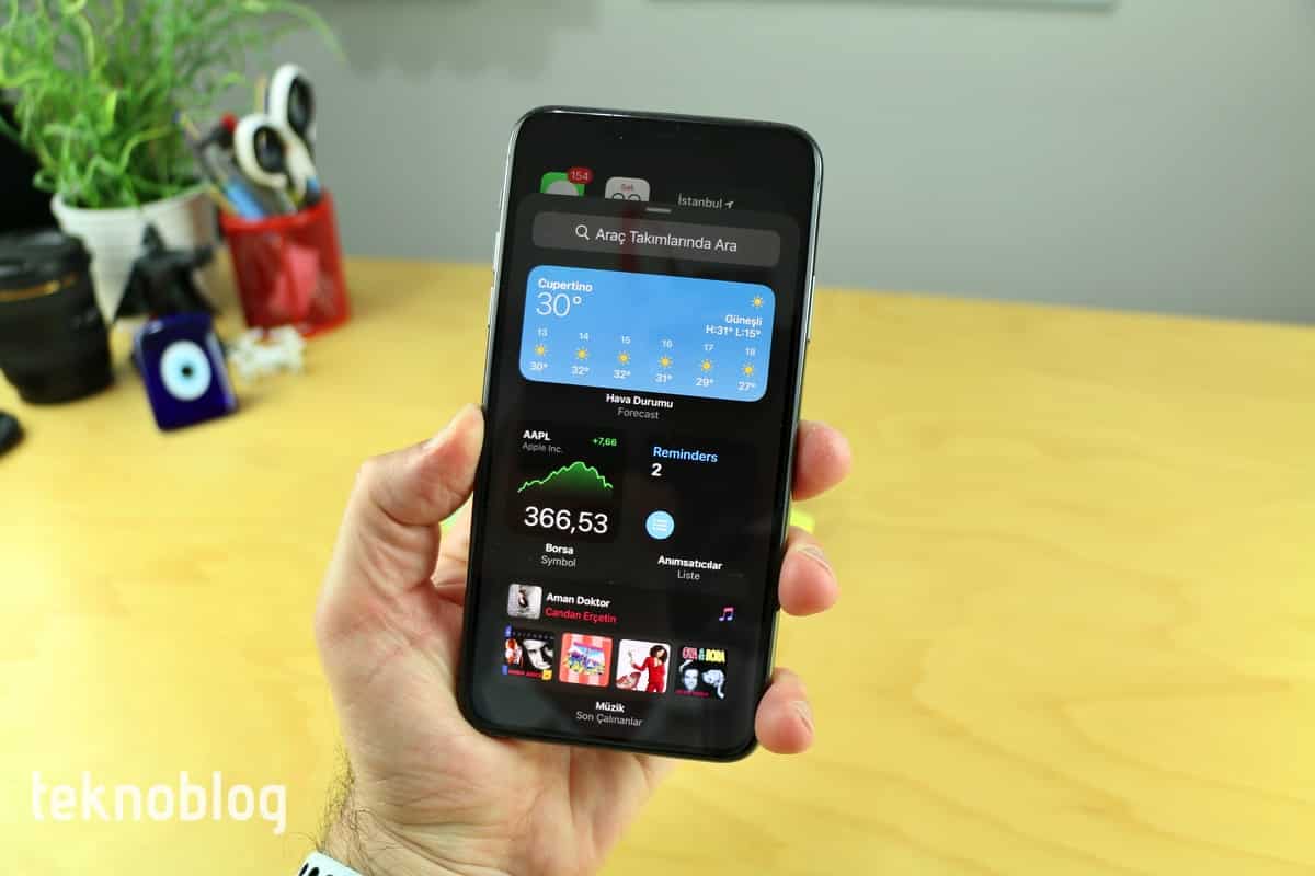 Ana ekran yönetiminde de dikkate değer değişiklikler var. Araç takımı ekle sayfası içinden istediğiniz bir araç takımını ana ekrana hızlıca ekleyebilirsiniz. Bunların arasında dikkat çekenlerden bir tanesi, Apple’ın da WWDC 2020 açılış konuşmasında üzerinde durduğu Akıllı Yığın oluyor. Günlük kullanımınıza göre çeşitli uygulamaların bileşenleri ana ekranda, tek bir araç takımı içinde gösteriliyor ve parmağınızı sürükleyerek bunların içinde gezinebilirsiniz.