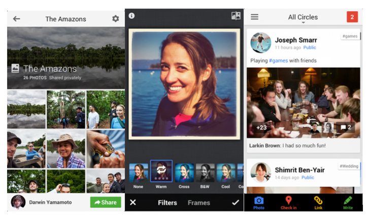 Güncellemeyle yeni bir görünüme kavuşan uygulamanın fotoğraf deneyimi önemli ölçüde yenilendi. Artık iOS için Google+ uygulamasını kullananlar fotoğraflar içinde öne çıkanları tarayabilecek, panorama ve kısa animasyonlar oluşturup paylaşabilecek ve otomatik iyileştirme seçeneği sayesinde fotoğraflarının daha güzel görünmesini sağlayabilecek. Android için Google+ uygulaması da bir süre önce yayınlanan güncellemeyle bu özelliklere kavuşmuştu.