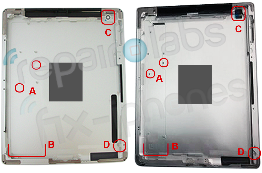 iPad 2 ve iPad 3’ün arka panelleri arasındaki en büyük fark olarak ise ana kart şekillerindeki farklılık göze çarpıyor. Bu değişiklik, daha büyük bir pile olanak sağlıyor ve iPad 3’ün daha uzun bir pil ömrüne sahip olacağına dair haberler ile de örtüşüyor.