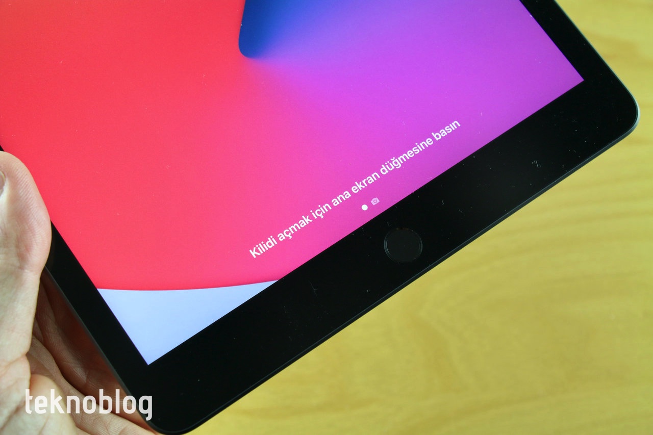 10.2 inç ekrana sahip olan iPad’in ekran çerçevesi iPad Air ve iPad Pro’lardakine göre daha geniş. Ekranın üst kısmında FaceTime kamerası, alt kısmında ise Touch ID parmak izi okuyucusunun entegre edildiği Ana ekran tuşu bulunuyor. Bu tuş iPhone 8 veya 7 gibi modellerde gördüğümüz titreşimli ve fiziksel tuş hissini veren türden bir düğme değil. Gerçekten fiziksel bir tuş ve kullanımı da gayet rahat. Touch ID de gayet hızlı şekilde çalışıyor. Gerek ekran kilidini açma, gerek App Store indirme işlemlerinde kimlik doğrulama gibi işlerde rahatlıkla kullanılıyor.