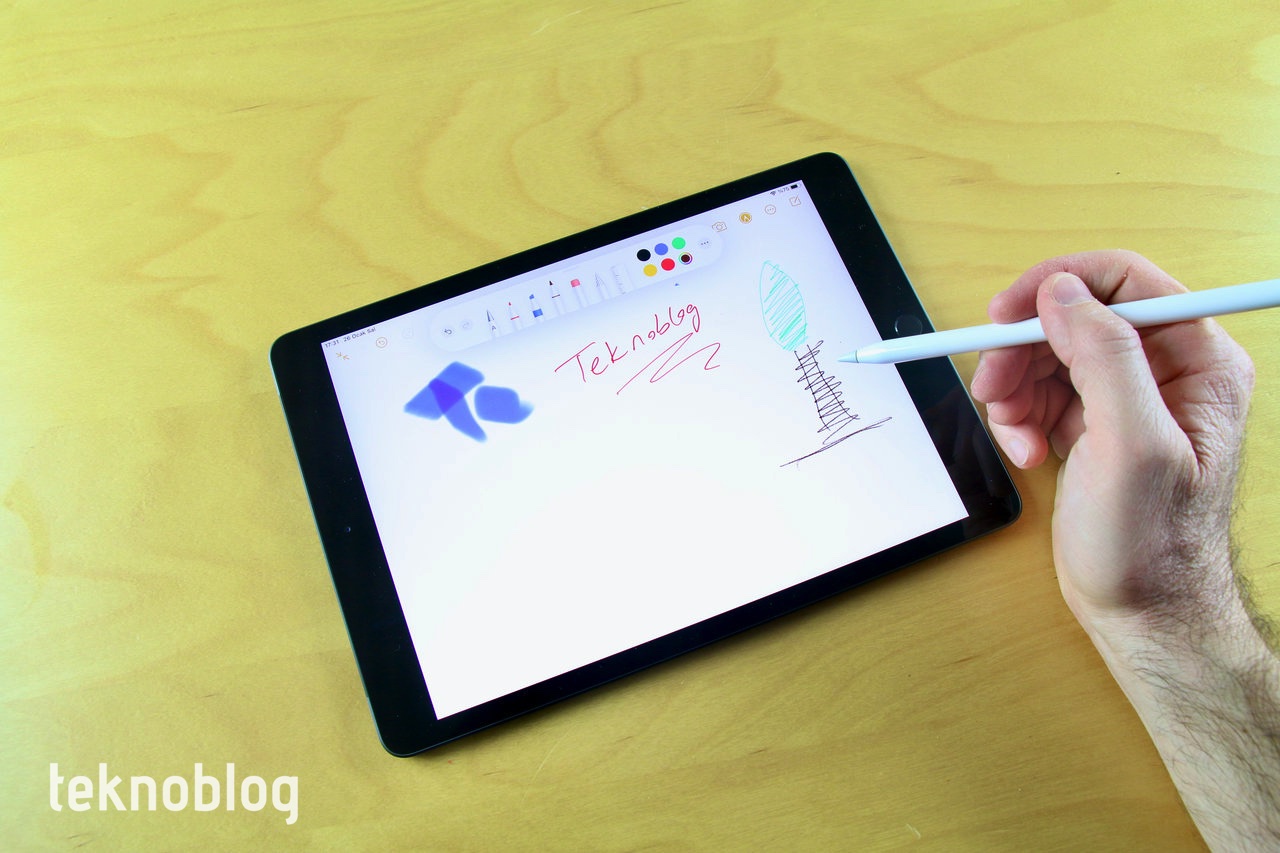 Bizim elimizde önceki iPad incelemelerinden kalan birinci nesil Apple Pencil var ve bunu da 8. nesil iPad ile kullanıyorsuz. Apple Pencil elle not alma veya çizim yapma gibi işlerde önceden olduğu gibi işini iyi şekilde yerine getiriyor. Photoshop veya benzeri yaratıcılık odaklı uygulamalarda da Apple Pencil verimi biraz daha artırıyor. Ayrıca iPad’i çocuğunuz için düşünüyorsanız, Apple Pencil’ı da edinerek tablet üzerinde eğitim uygulamalarını daha verimli şekilde kullanmasını sağlayabilir, onların kalem alışkanlığını kaybetmemelerine yardımcı olabilirsiniz. Uzun zamandır klavye kullanan ve kalem kullanmakta zorlanan birçok kişi var, onlardan bir tanesi de benim. Dijital yaşamdan vazgeçemeyenler için Apple Pencil, kalem ile yazı yazma alışkanlığını kaybetmemek için de iyi bir araç oluyor. Tabii ki, bunun tabletin üstüne ek bir bedeli var.