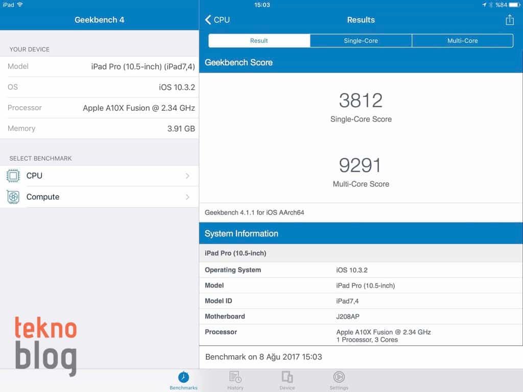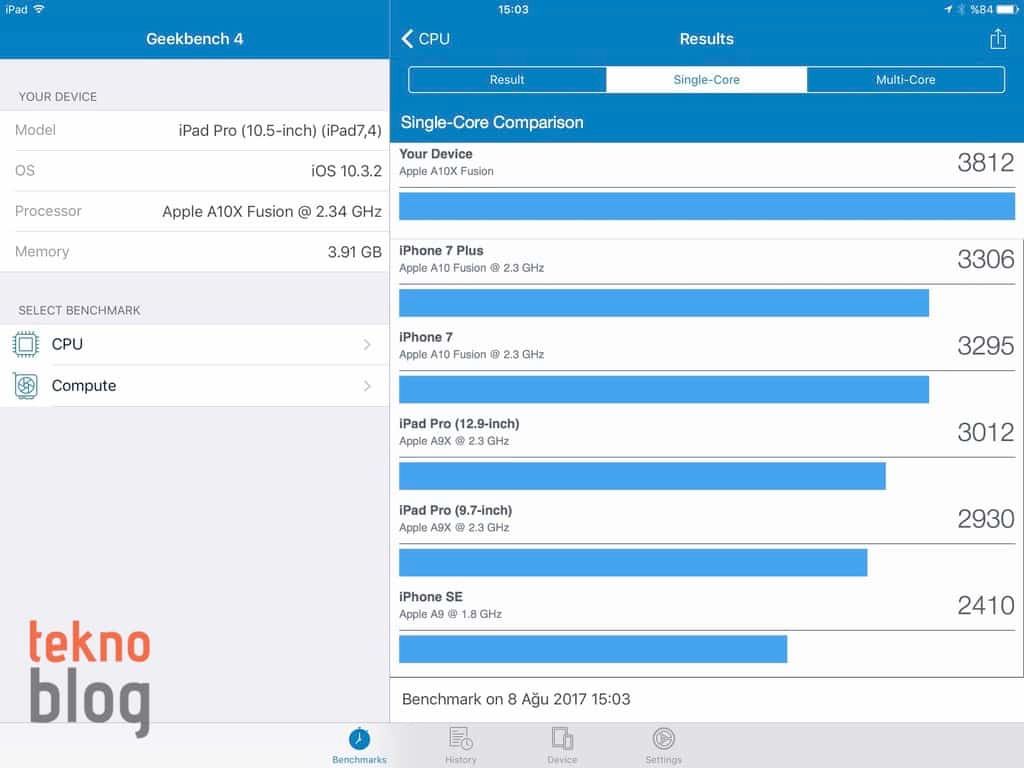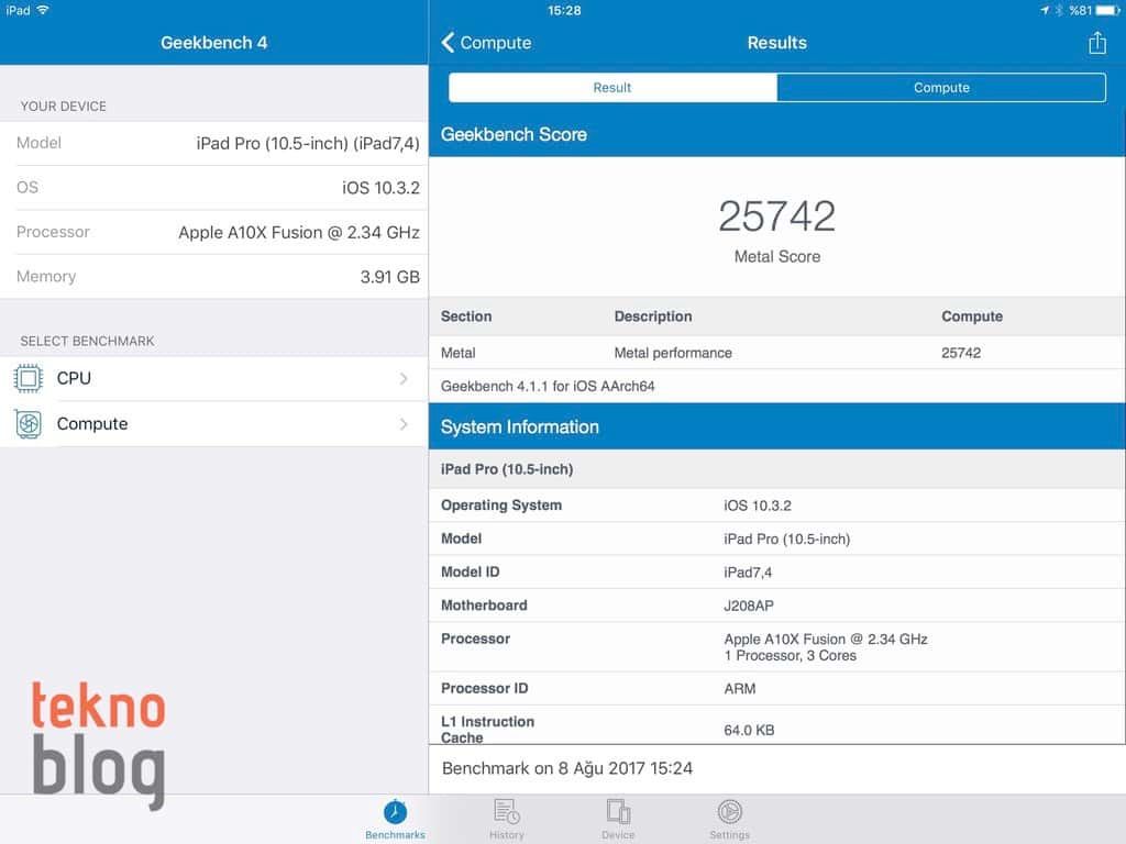 Apple, yeni iPad Pro’nun ekranıyla sunduğu etkileyici ve doyurucu görsel deneyimi yüksek performansla tamamlıyor. Apple A10X Fusion işlemci, daha önce gördüğümüz iki iPad Pro modelinde yer alan A9X işlemciye göre yüzde 30’a varan oranda daha hızlı CPU performansı sunuyor. Üstelik benchmark testleri A10X Fusion’ın performans açısından birçok PC’yi de geçebildiğini gösteriyor. Grafik tarafında da Apple’ın belirttiğine göre, yüzde 40’a varan oranda daha yüksek hıza ulaşılıyor. M10 yardımcı hareket işlemcisinin de sisteme dahil olduğunu belirtelim. Bu arada, her ne kadar Apple belirtmese de, GeekBench 4 benchmark test uygulaması sayesinde bu tablette 4 GB RAM bulunduğunu görüyoruz. Böylelikle Apple, geçen yılın daha küçük ekranlı tabletinde yer verdiği 2 GB RAM’in yerine, bu yıl her iki Pro tabletine de aynı miktarda RAM eklemiş oluyor.
