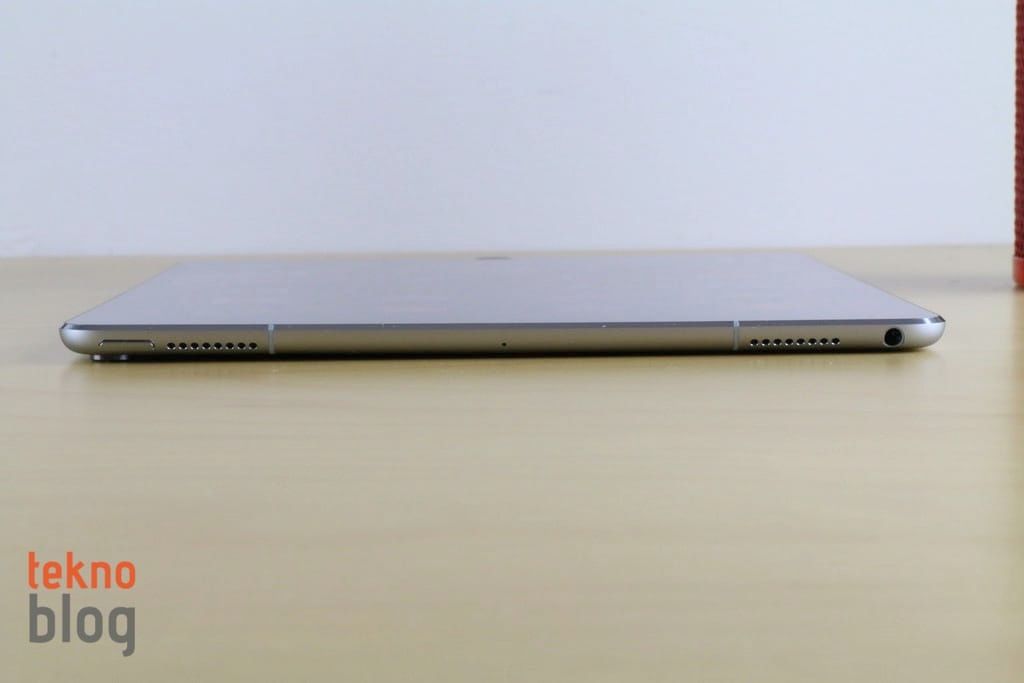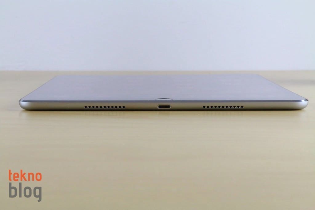 Kenarlara baktığımızda geçen yılların 12.9 veya 9.7 inç iPad Pro’larından farklı bir düzenin olmadığını görüyoruz. Sağ kenarda ses tuşları, sol kenarda ise Smart Keyboard veya diğer destekleyen aksesuarların bağlanmasını sağlayan Smart Connector portu bulunuyor. Alt ve üst kenarlarda, kıyılara doğru yerleştirilmiş toplam dört adet hoparlör ızgarası da mevcut. Bunun dışında alt kenarda Lightning portu, üst kenarda da 3.5 milimetre kulaklık jakı ve güç butonu bulunuyor.