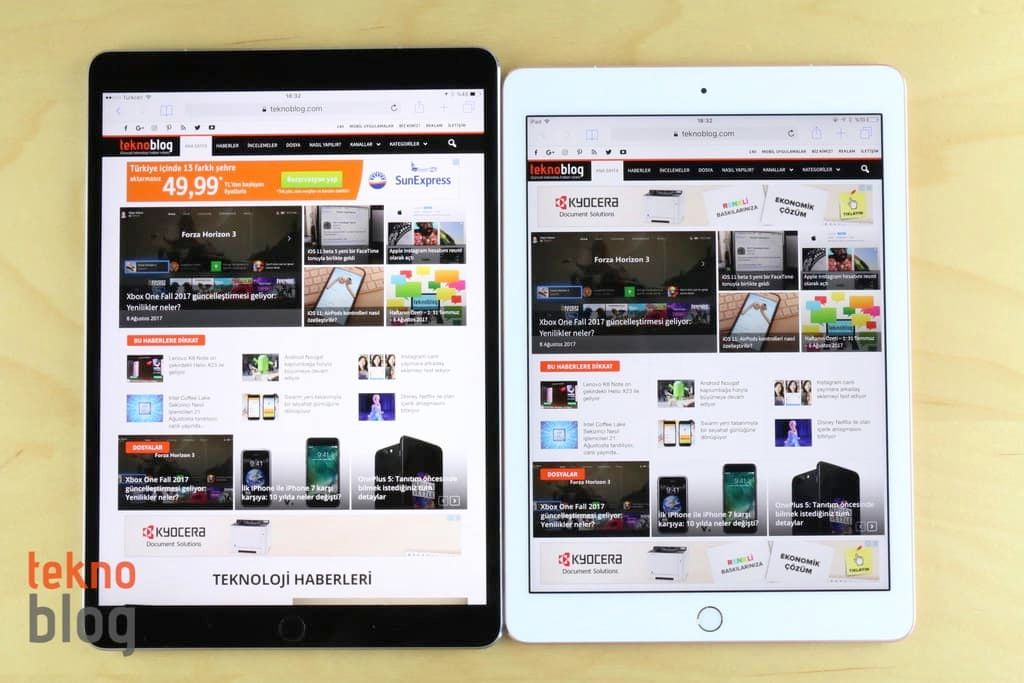 Ne var ki, ekranın büyümesiyle yüzey alanının büyümesi aynı oranda olmuyor. Apple, 10.5 inç ile, geçen yılın iPad Pro tabletine göre köşeden köşeye uzunluğu yaklaşık 1,5 santimetre kadar artıyor. Ne var ki, tabletin genişliği ve yüksekliğinin artışı ekrandaki artış oranının altında kalıyor. Bunda en önemli etken, ekranı saran çerçevenin, klasik bir iPad ekran çerçevesine göre daha dar tutulması. Tamam, ekranın dört bir yanındaki çerçeve kalınlıkları dikkat çekici genişlikte, ancak klasik 9.7 inç iPad’inkine göre her tarafta daha dar olduğunu da belirtmek gerekiyor.