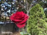 Portre çekimlerde telefoto lens olmadığı için görüş açısı iPhone 12 Pro’dakine göre daha geniş, süjenin etrafında daha geniş alan alınarak fotoğraf çekimi yapılıyor. Sonuçların genel olarak iyi olduğunu söyleyebiliriz. Ancak bazen saç veya saçtaki toka gibi nesnelerin arka plandan ayırt edilmesinde sorunlar söz konusu olabiliyor. Bu arada kamera sisteminin netlemesinin hızlı olduğunu söylemeliyiz. Rüzgarlı bir ortamda yakından çekmeye çalıştığımız gülün tüm hatları keskin bir şekilde belli oluyor. Bu fotoğrafı da galeride bulabilirsiniz.