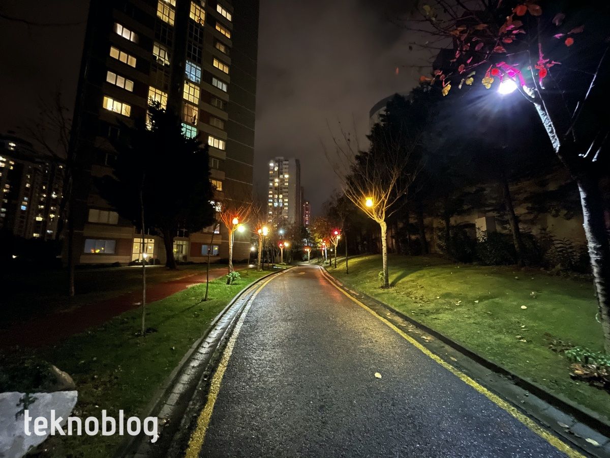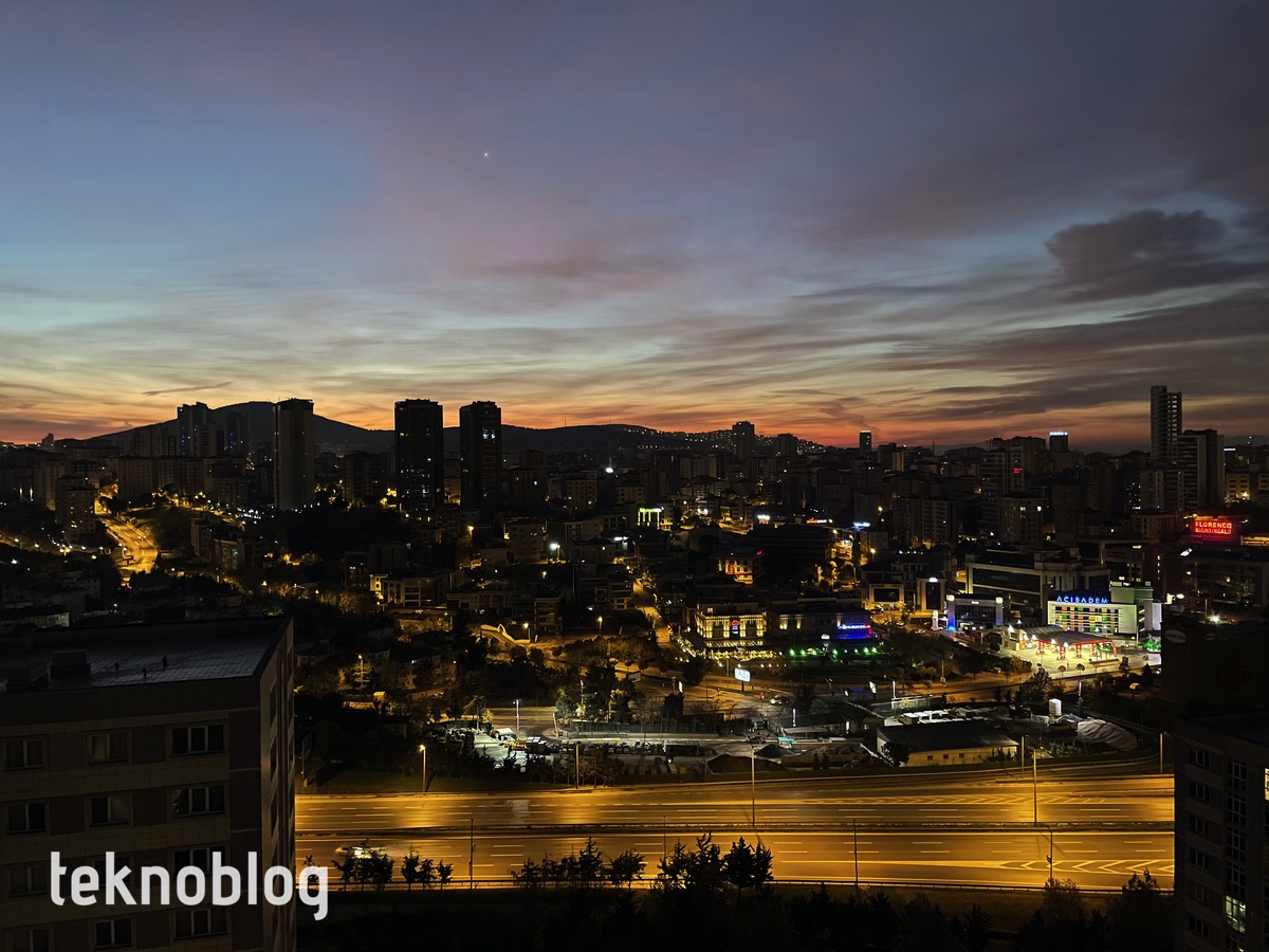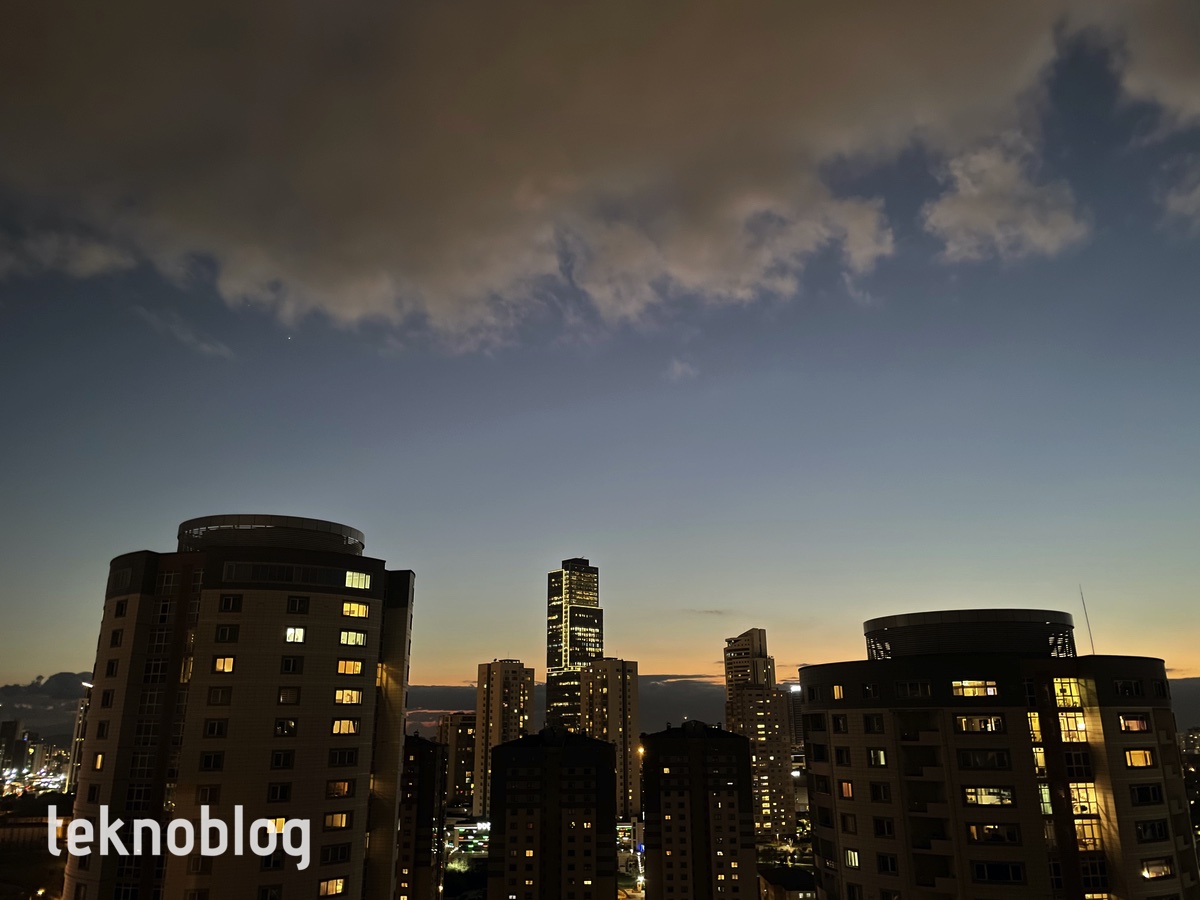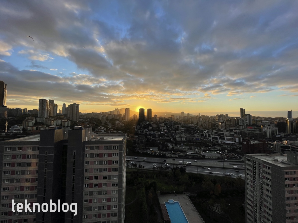 Bu kamera sisteminde Apple’ın Smart HDR 3 olarak adlandırdığı HDR sistemi var. Verdiği sonuçlar da iyi. Işığın karşıdan geldiği, yüksek pozlamalı ve gölgeli alanların bulunduğu fotoğraflarda aydınlatma gerçekten de dengeli biçimde yapılıyor. Özellikle aşağıdaki gün doğumu fotoğrafında bunu iyi şekilde görebilirsiniz. Bunun yanında ultra geniş açılı lens de iyi performans sergiliyor. Ana kamerayla tutarlı bir renk doğruluğu ve sıcaklığı sunmayı başarıyor. Buna ek olarak düşük ışıktaki çekimlerde de performansını fena bulmadığımızı söylememiz gerekiyor.