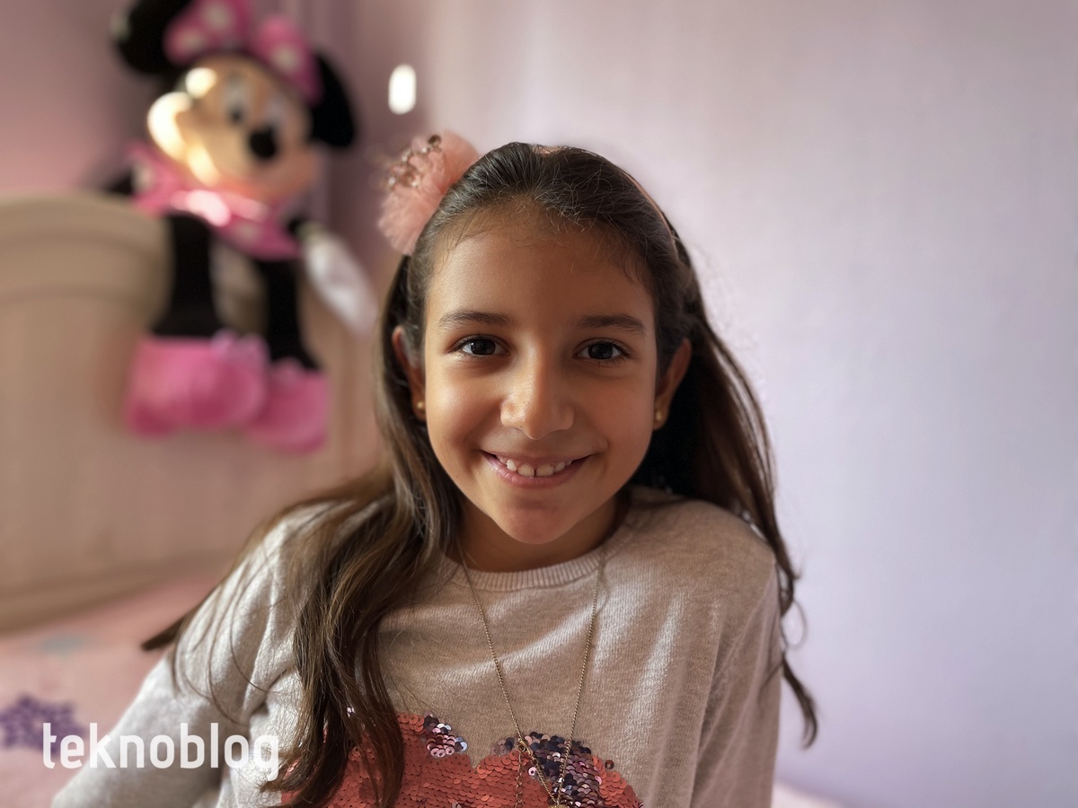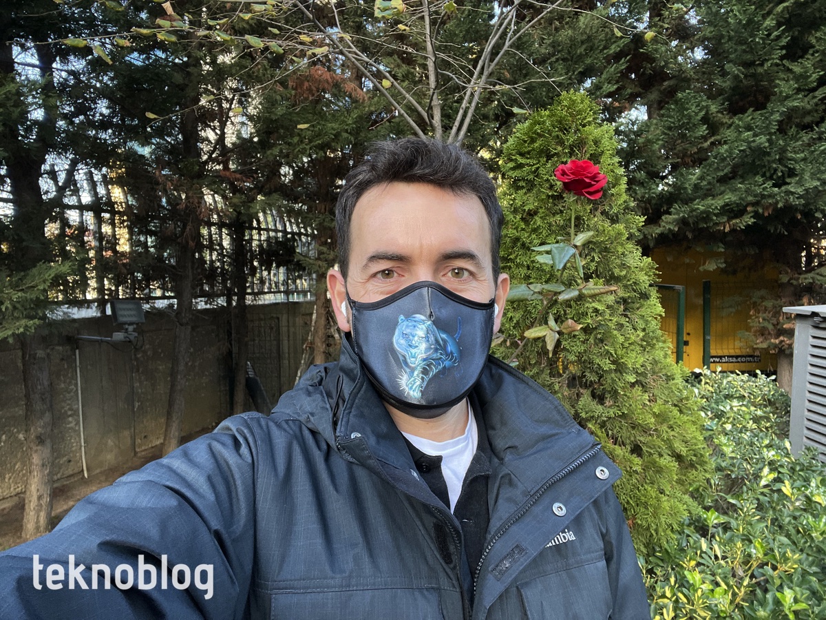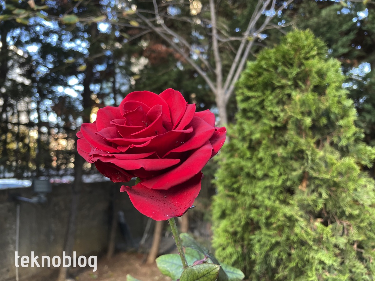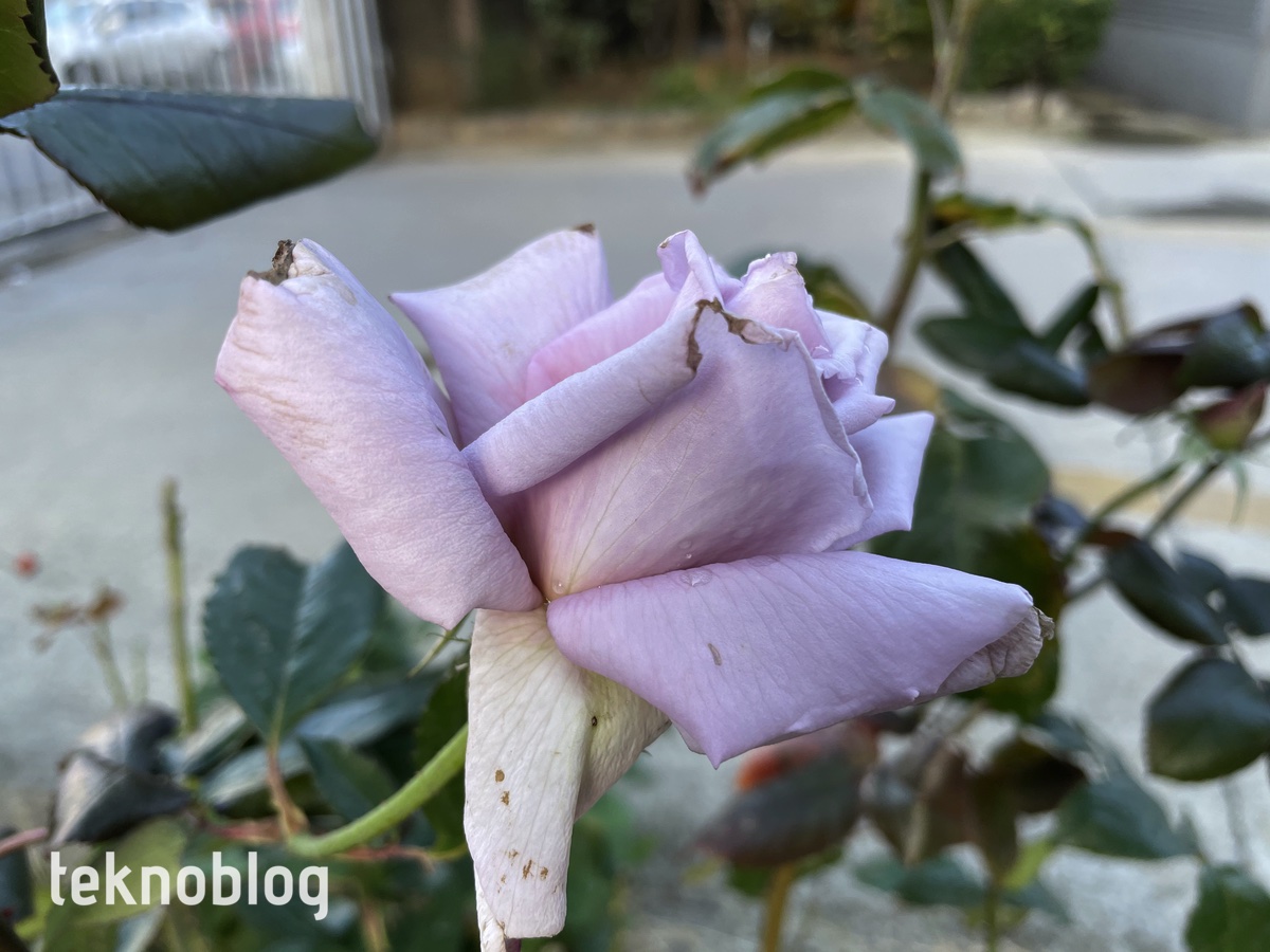 Portre çekimlerde telefoto lens olmadığı için görüş açısı iPhone 12 Pro’dakine göre daha geniş, süjenin etrafında daha geniş alan alınarak fotoğraf çekimi yapılıyor. Sonuçların genel olarak iyi olduğunu söyleyebiliriz. Ancak bazen saç veya saçtaki toka gibi nesnelerin arka plandan ayırt edilmesinde sorunlar söz konusu olabiliyor. Bu arada kamera sisteminin netlemesinin hızlı olduğunu söylemeliyiz. Rüzgarlı bir ortamda yakından çekmeye çalıştığımız gülün tüm hatları keskin bir şekilde belli oluyor. Bu fotoğrafı da galeride bulabilirsiniz.
