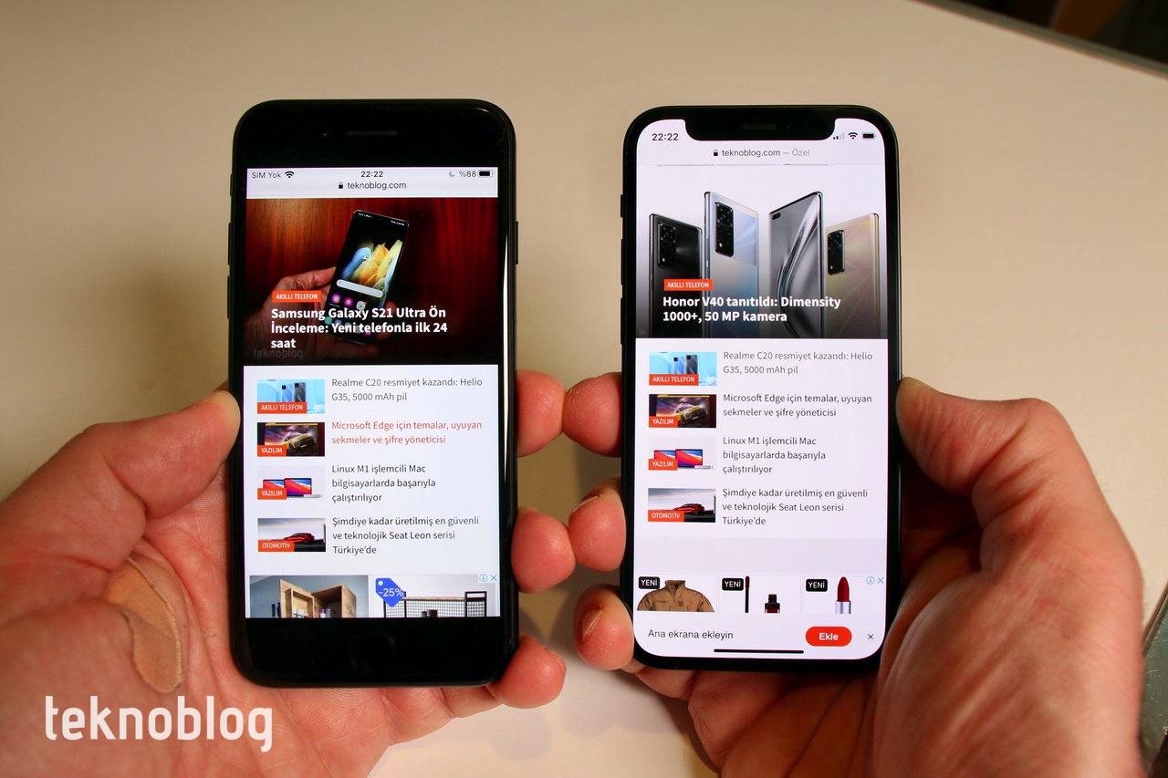 iPhone 12 mini ile iPhone SE 2020 ekranları arasında küçük bir karşılaştırma yapacak olursak, barındırdığı teknolojiler, çözünürlük ve kalite açısından 12 mini ipi önde göğüslüyor. Her iki ekran da aynı genişliğe sahip olmakla birlikte, boy açısından 12 mini’nin ekranı daha avantajlı. Bu sayede Mesajlar, Safari gibi uygulamalarda ekranda aynı anda daha fazla satır ve dolayısıyla içerik görüntüleyebiliyor.