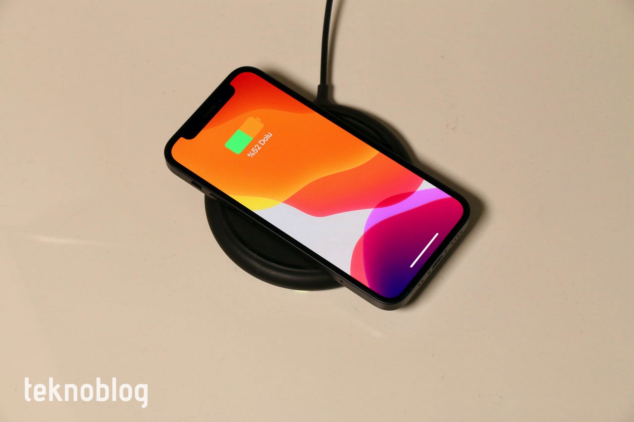 Daha önceki iPhone modellerinde ve 12 serisinin diğer üyelerinde olduğu gibi, bu telefonda da kablosuz şarj desteği mevcut. Öncelikle Qi kablosuz şarj protokolünü destekleyen aksesuarlarla 7.5W seviyesine kadar güç çıkışını destekliyor. Bu şekilde şarj işlemi yaklaşık 3-4 saat arası bir sürede tamamlanıyor ve çok pratik sayılmaz. Daha çok gece yatarken baş ucunuzda veya çalışma masanızda böyle bir aksesuar varsa, gece boyunca iPhone 12 mini’yi burada tutabilirsiniz. Telefonda yer alan güç koruması sayesinde şarjda sürekli tutmak da zarar vermeyecektir. Tabii ki, iPhone 12 mini’nin kablosuz şarj desteğinden en fazlasını almak için MagSafe destekli bir kablosuz şarj aksesuarı edinmeniz iyi olacaktır. Bu aksesuar ile 15W’a kadar güç çıkışı almak mümkün oluyor. Kablolu şarja göre yine daha yavaş kalsa da, standart Qi aksesuarlarına göre çok daha hızlı bir kablosuz şarj desteği edineceğinizi söyleyebilirim.