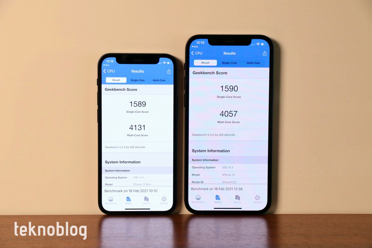 Tabii ki, iPhone 12 mini’yi her zaman olduğu gibi GeekBench 5 benchmark testinden geçirdim. iPhone 12 ile karşılaştırdığımda hemen hemen aynı seviyede puanlar aldı. Ancak CPU testinde iPhone 12 daha yüksek bir çoklu çekirdek sonucu verdi. Ne var ki, pratikte her iki telefon arasındaki performans farkının hissedilmeyecek derecede olduğunu söyleyebilirim.