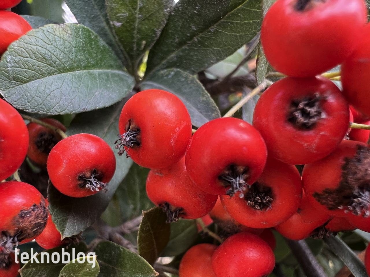iPhone 13 Pro’ya has bir kamera özelliği de makro modu. Çekeceğiniz nesneye 2-2,5 cm kadar yaklaştığınızda ultra geniş kamera devreye giriyor ve çok yakına netleme yapılıyor. Bu özellik otomatik olarak çalışıyor, Apple iOS 15.1 ile birlikte bunun arzu edildiği takdirde kapatılmasını sağlayan bir ayar ekleyecek. Makro modu gerçekten oldukça başarılı, çiçek ve benzeri nesnelerdeki detayları iyi şekilde yakalıyor. Aynı mesafeden iPhone 13 ile yaptığımız çekimlerde de sonuçlar memnun ediciydi, buna rağmen, örneğin bir çiçek fotoğrafında tam ortaya netleme yapılmıyordu. Halbuki iPhone 13 Pro, tam da ortada netlemeyi düzgün bir şekilde gerçekleştiriyordu.