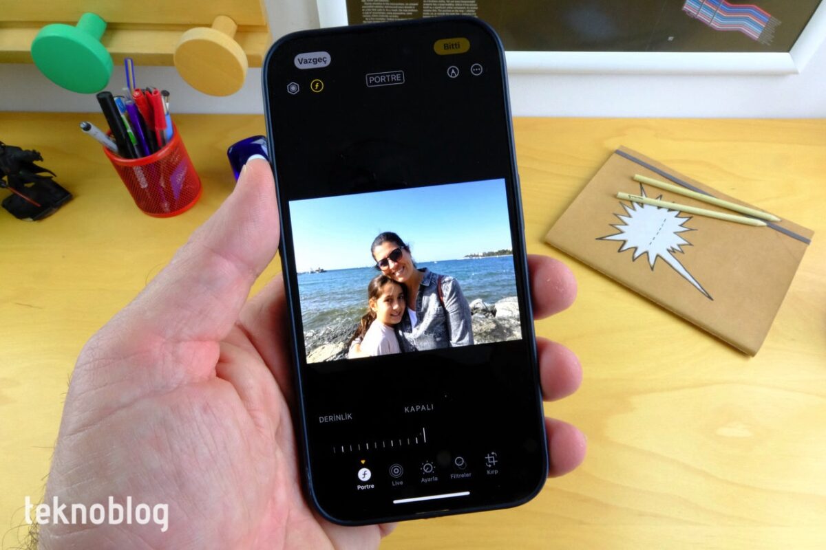 Portre demişken, iPhone 15 Pro ile farklı yakınlaştırma seviyelerinde, etkileyici portre fotoğraflar çekebilirsiniz. Üstelik şimdi, Portre modu ile çekmediğiniz fotoğrafları bile, arka plan bulanıklaştırmasını ayarlayarak portre fotoğraflara dönüştürebilirsiniz. iPhone, normal Fotoğraf modunda insan, kedi, köpek fotoğrafı çekildiği zaman derinlik bilgisini de otomatik olarak toplayarak bunların düzgün bir şekilde portre fotoğraflara dönüştürülmesini sağlıyor. Üstelik portre fotoğraflarını düzenlerken odak noktasını belirleyerek netlik düzeninde de değişiklikler yapabilirsiniz. Photonic Engine, portre fotoğraflarda da çalışarak düşük ışıklı ortamlarda çekilen portre fotoğrafların bile iyi sonuç vermesine olanak sağlıyor.