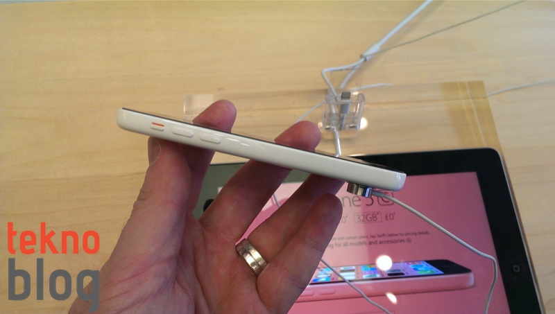 iPhone 5c’nin polikarbondan yapılmış arka paneli bir hayli sert. Eğer iPhone 5c’yi yere düşürürseniz iPhone 5’te veya iPhone 5s’te olduğu gibi kolay kolay çatlamaz veya kırılmaz gibi görünüyor. Ayrıca bu sertlik telefonun da elde biraz daha sağlamlık hissi vermesini sağlıyor. Öte yandan bu plastik yüzey kolay kolay parmak izi de tutmuyor.
